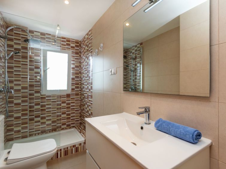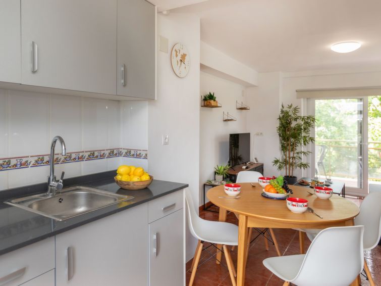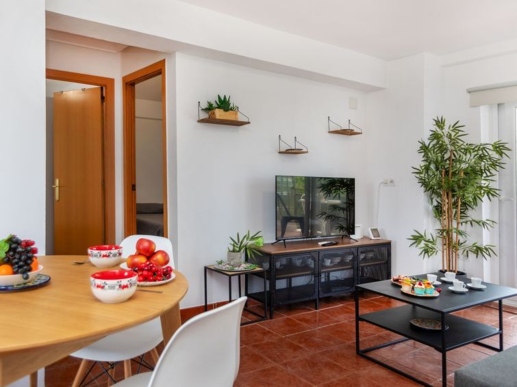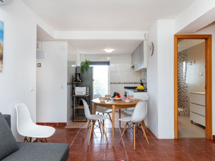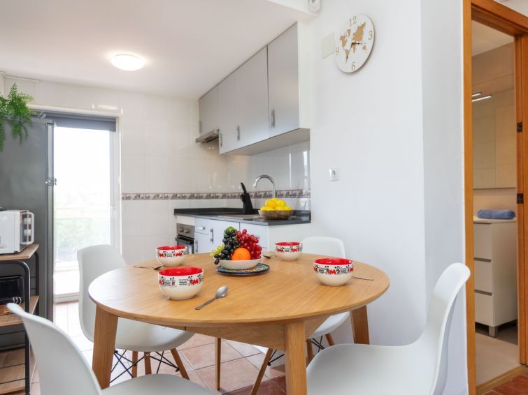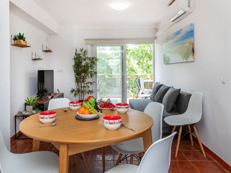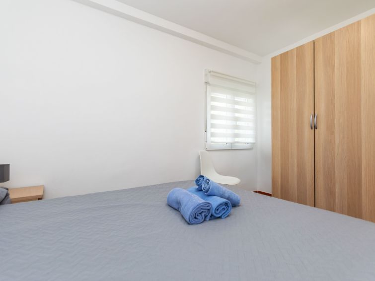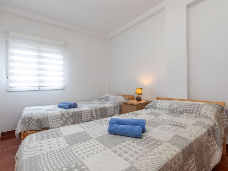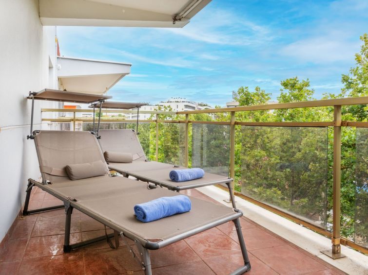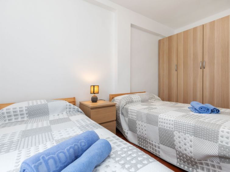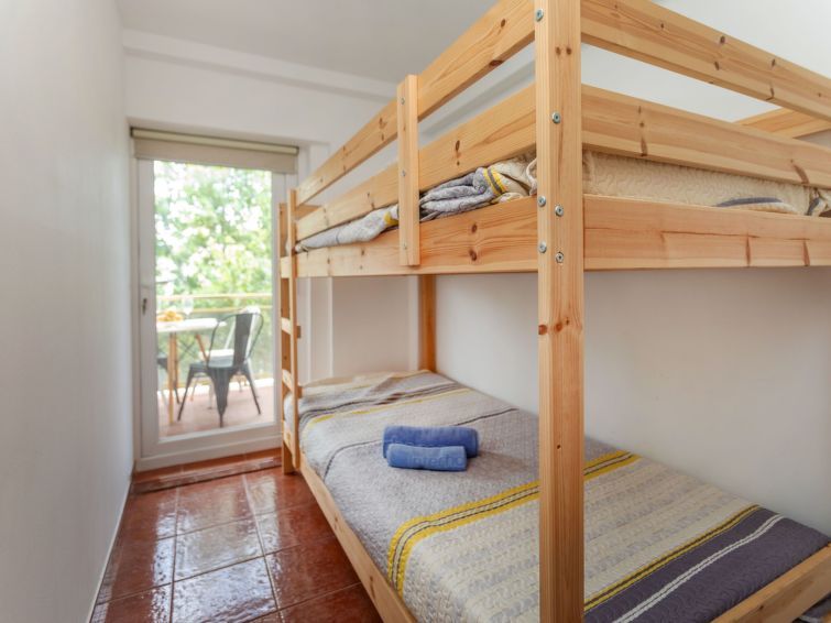 "Samoa", 4-room apartment 69 m2 on 5th floor. Practical and comfortable furnishings: living/dining room with digital TV. Exit to the terrace. 1 room with 1 french bed (160 cm, length 190 cm). 1 room with 2 beds (90 cm, length 190 cm). 1 room with 1 x 2 bunk beds (90 cm, length 190 cm).