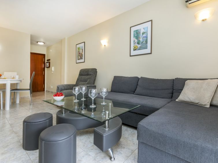 "Village Park", 3-room apartment 67 m2 on 3rd floor. Object suitable for 4 adults. Simple and practical furnishings: living/dining room with digital TV and air conditioning. Exit to the terrace. 1 room with 1 french bed (1 x 150 cm, length 190 cm). Exit to the terrace. 1 room with 1 french bed (150 cm, length 190 cm), bath/WC.
