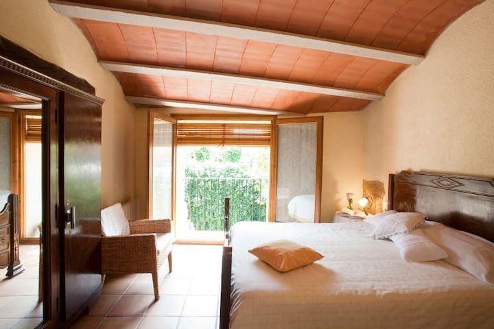 If you’ve picked up a few local wines from the Penedes region, perhaps enjoy them in the sun-dappled stone courtyard, which feels distinctly 17th century with its alcoves and honey-hued stone. Thick stone walls keep things cool inside, and old archways are on display for that traditional farmhouse feel. Dark wood, antique furniture throughout is a charming touch and we love the provincial master bedroom with its own slender balcony for a quiet moment alone.