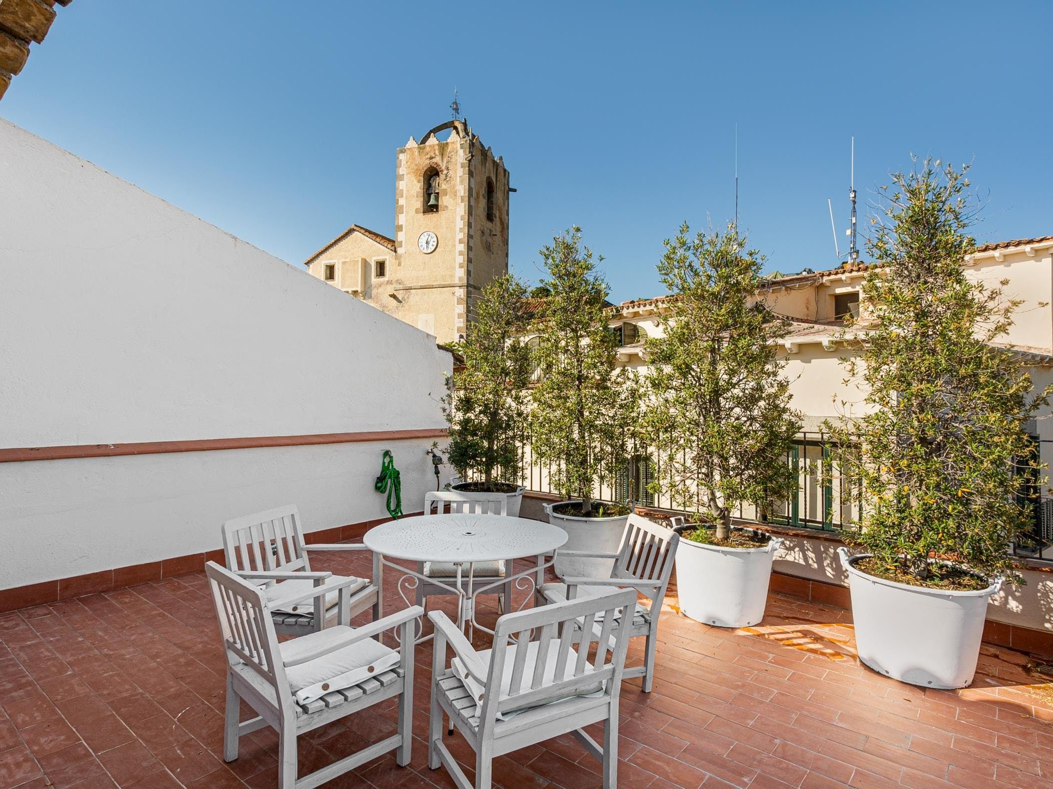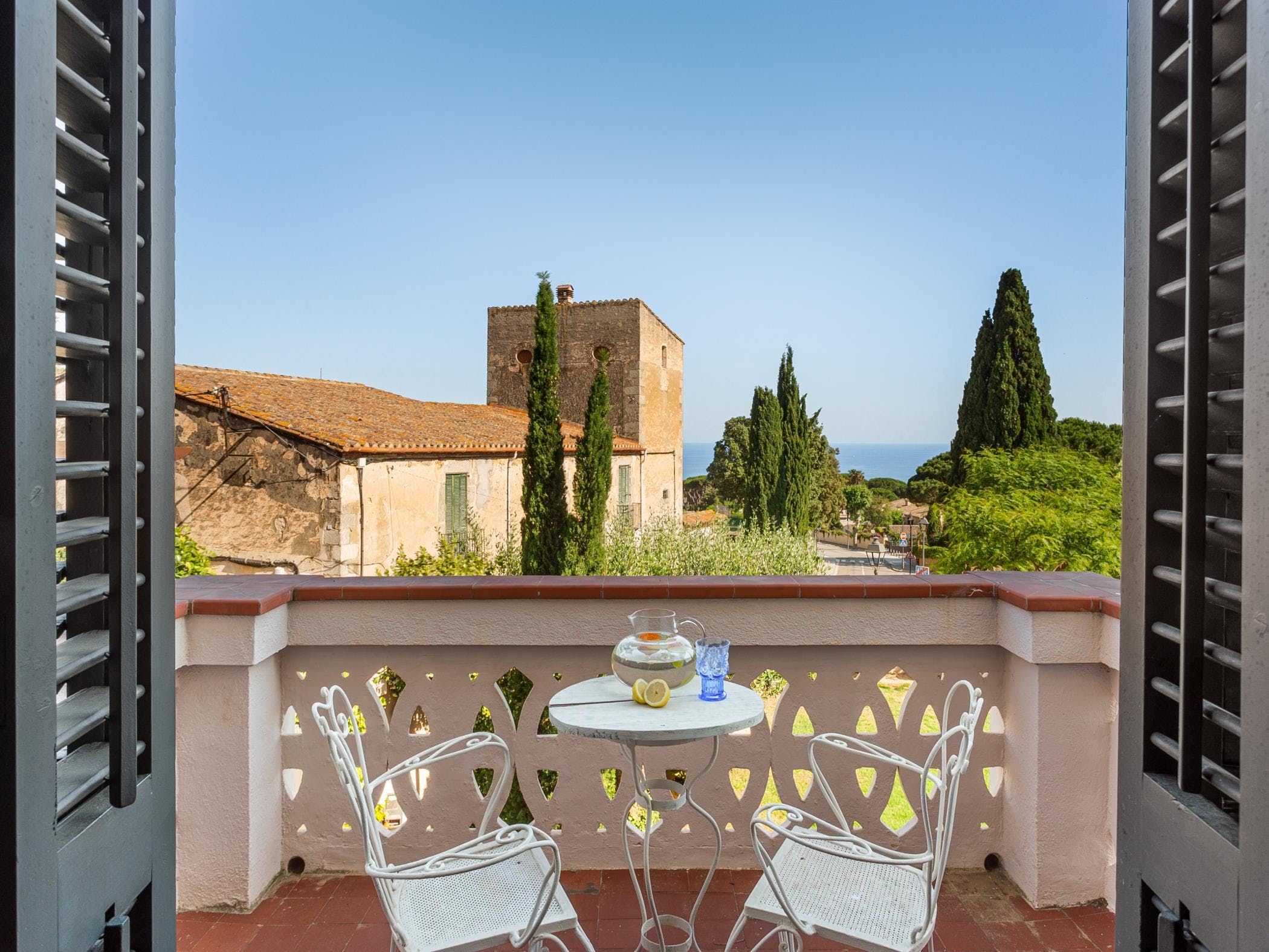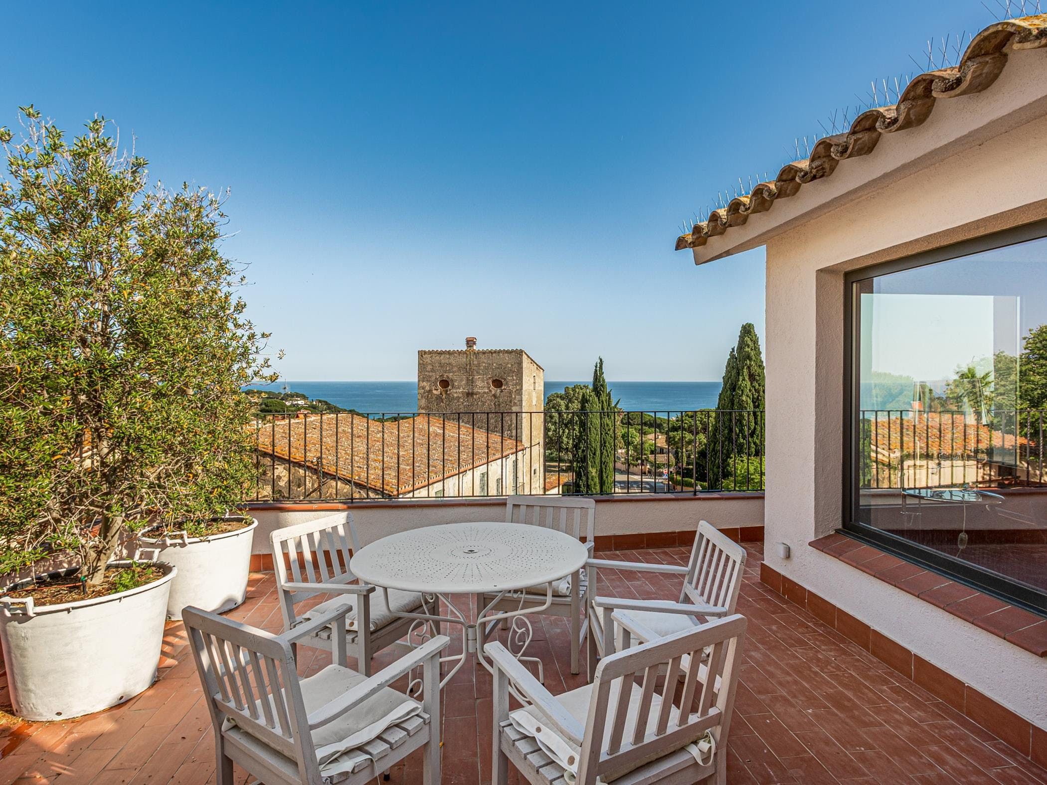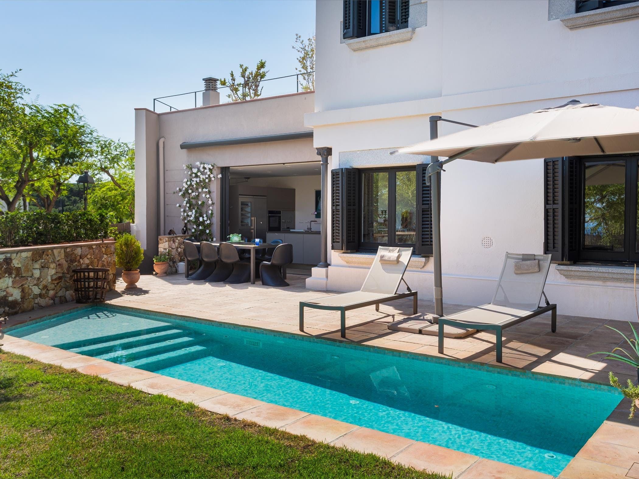 This sea-facing villa sits by a belltower in the charming old town of Sant Vicenç de Montalt. Aside from the restful pool terrace and plenty of intimate seating spots, you'll discover practical spaces indoors, including an office and garage. The twin bedroom in the attic has its own kitchenette and en-suite bathroom, perfect for teens craving some privacy. Just down the road from Platja dels Tres Micos, you can balance beach days and golf rounds with sightseeing when you stay thirty minutes from central Barcelona.