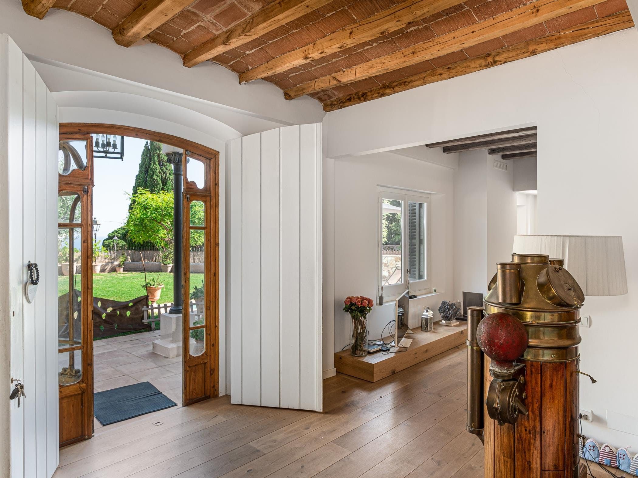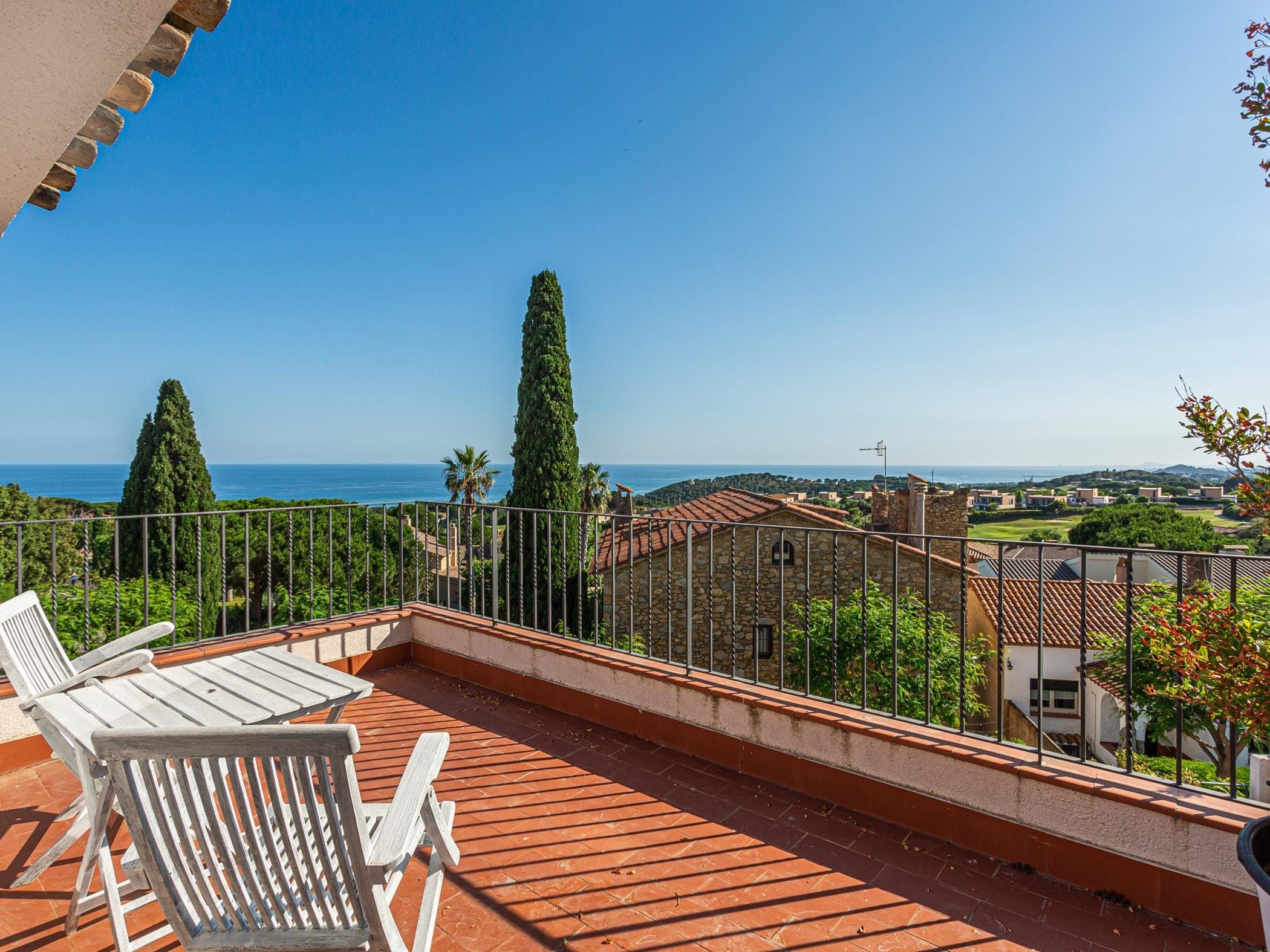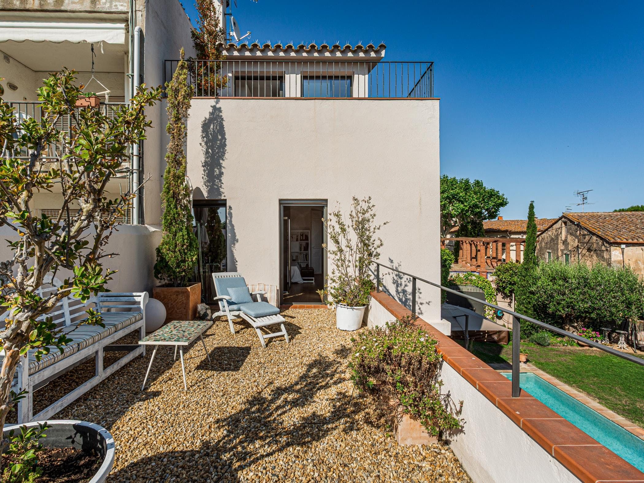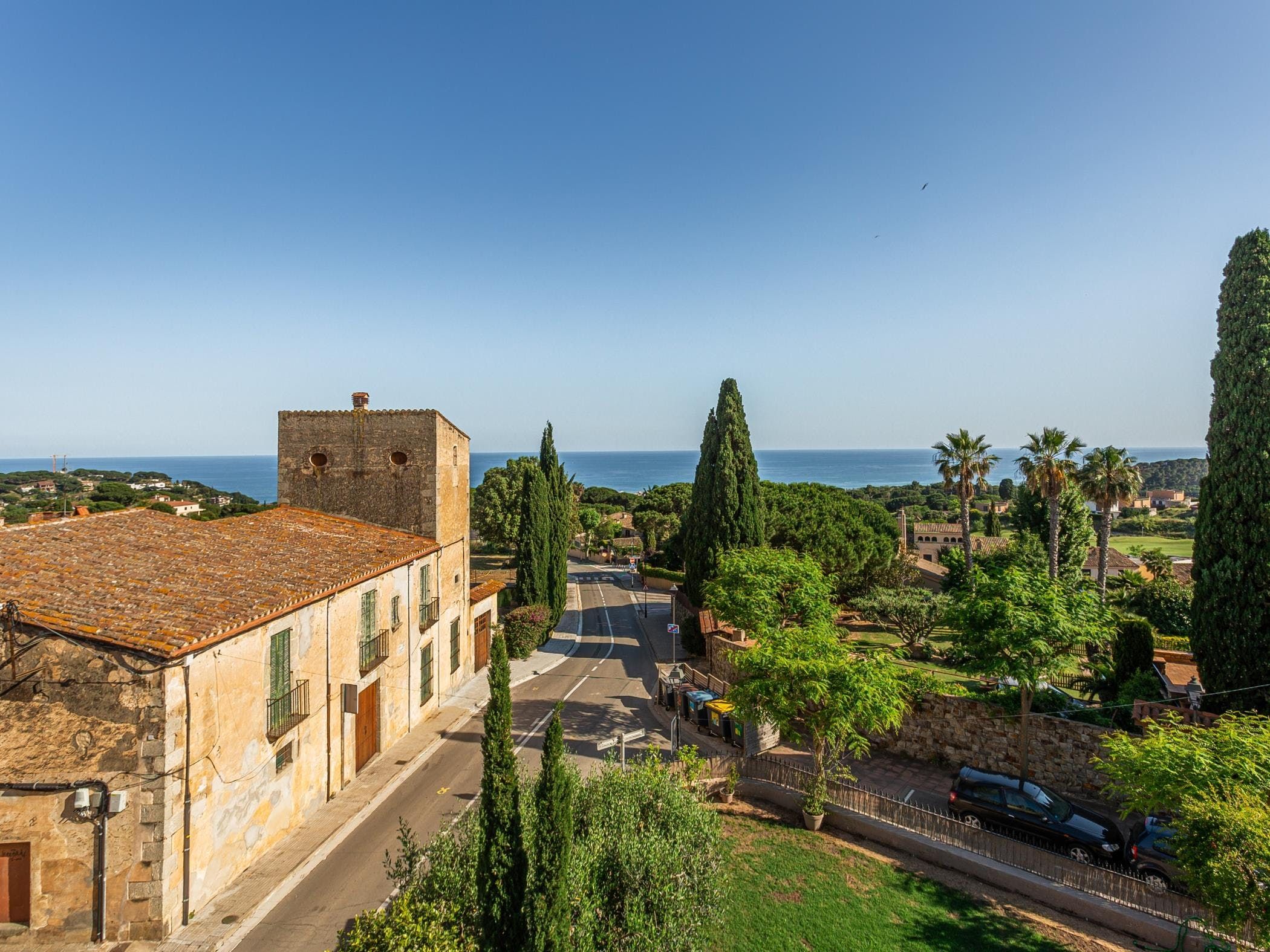 This sea-facing villa sits by a belltower in the charming old town of Sant Vicenç de Montalt. Aside from the restful pool terrace and plenty of intimate seating spots, you'll discover practical spaces indoors, including an office and garage. The twin bedroom in the attic has its own kitchenette and en-suite bathroom, perfect for teens craving some privacy. Just down the road from Platja dels Tres Micos, you can balance beach days and golf rounds with sightseeing when you stay thirty minutes from central Barcelona.