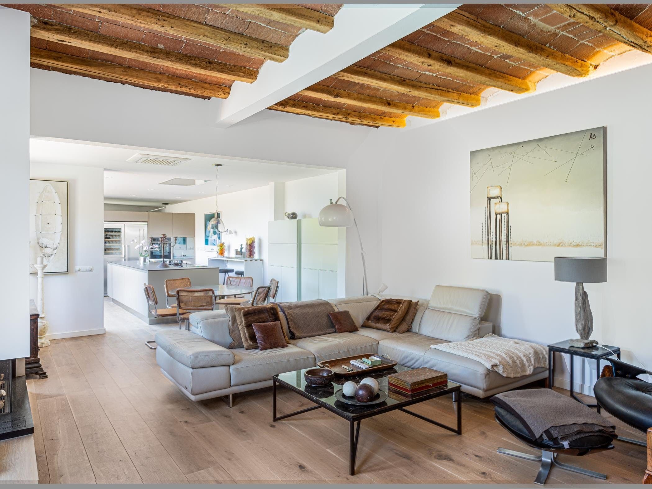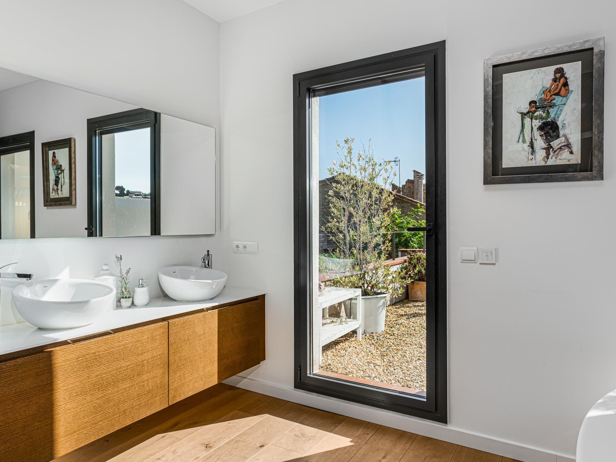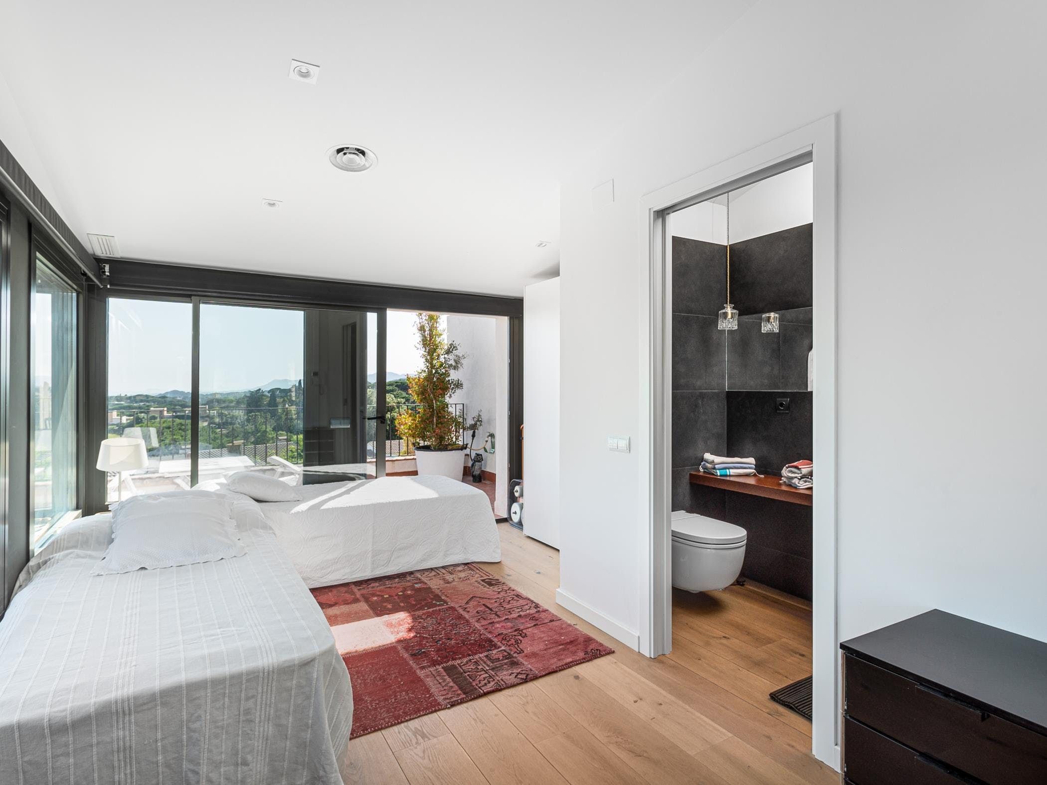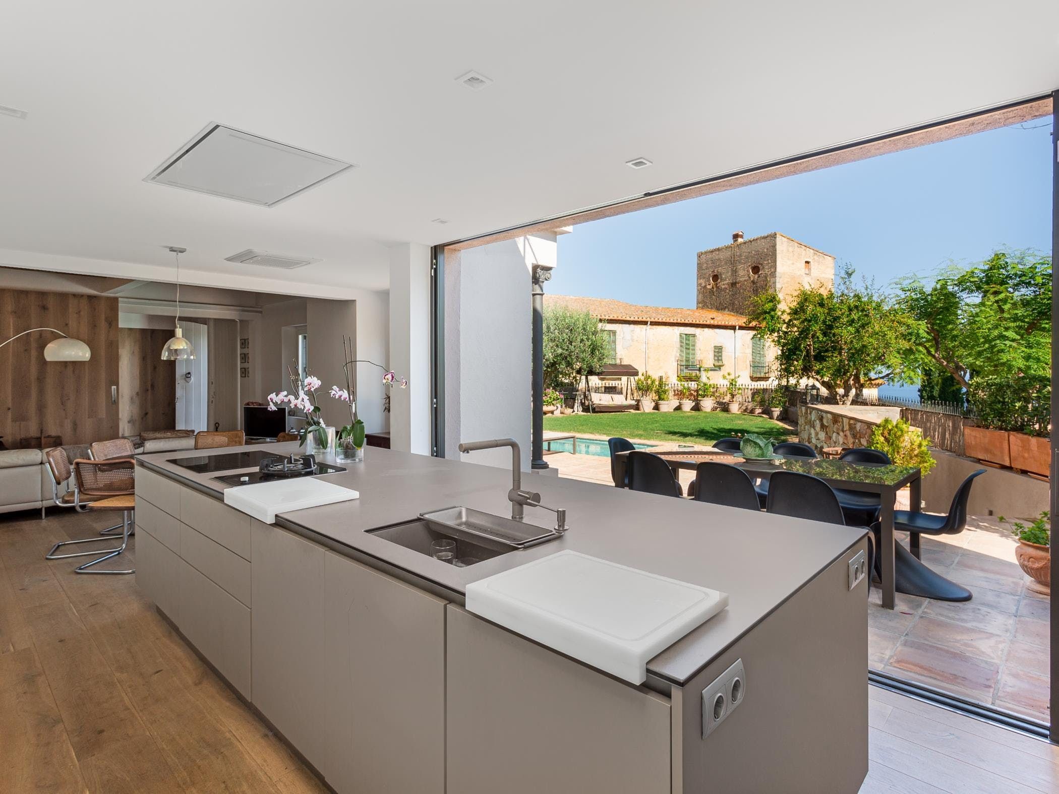 This sea-facing villa sits by a belltower in the charming old town of Sant Vicenç de Montalt. Aside from the restful pool terrace and plenty of intimate seating spots, you'll discover practical spaces indoors, including an office and garage. The twin bedroom in the attic has its own kitchenette and en-suite bathroom, perfect for teens craving some privacy. Just down the road from Platja dels Tres Micos, you can balance beach days and golf rounds with sightseeing when you stay thirty minutes from central Barcelona.