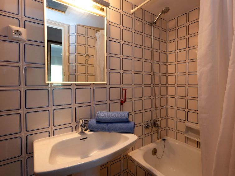 "Els Pins", 5-room apartment 82 m2. Practical and comfortable furnishings: living/dining room with dining table, digital TV and fan. Exit to the balcony. 1 room with 1 french bed (135 cm, length 190 cm), fan. 1 room with 2 beds (90 cm, length 190 cm), fan. 1 room with 1 bed (90 cm, length 190 cm), fan.