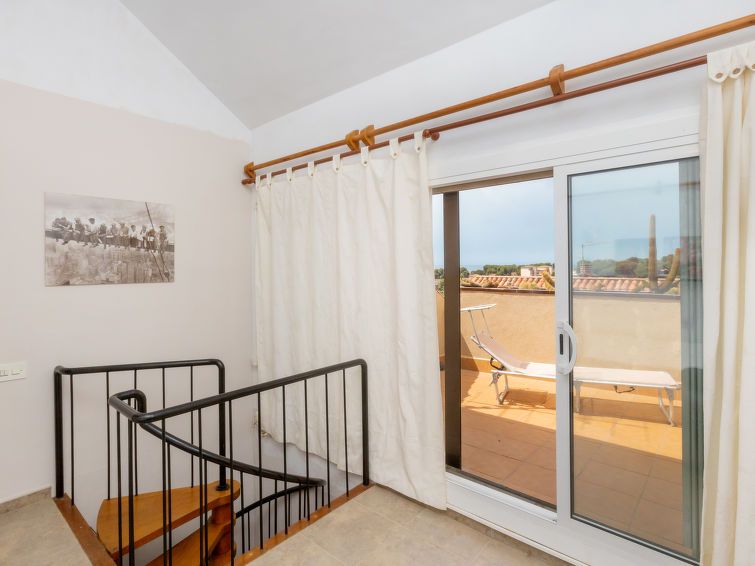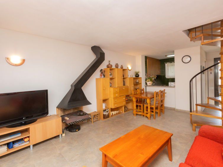 "Sol", 4-room semi-detached house 66 m2. Comfortable and modern furnishings: living/dining room with dining table and digital TV. Exit to the terrace. Kitchenette (4 hot plates, oven, toaster, microwave, electric coffee machine). No heating option. Upper floor: 1 room with 1 french bed (135 cm, length 190 cm).