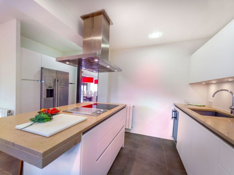 "La Gargouille", 6-room house 250 m2 on 3 levels. Comfortable and tasteful furnishings: living/dining room with open-hearth fireplace and satellite TV. Exit to the terrace. 1 room with 2 beds (90 cm, length 190 cm), bath/WC. Kitchen (oven, dishwasher, 3 induction hot plates, toaster, kettle, microwave, cooking island) with dining table.