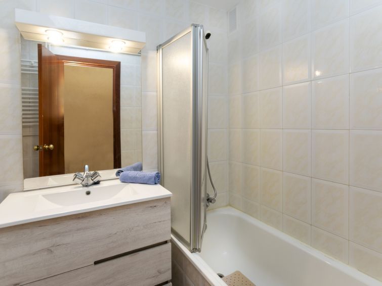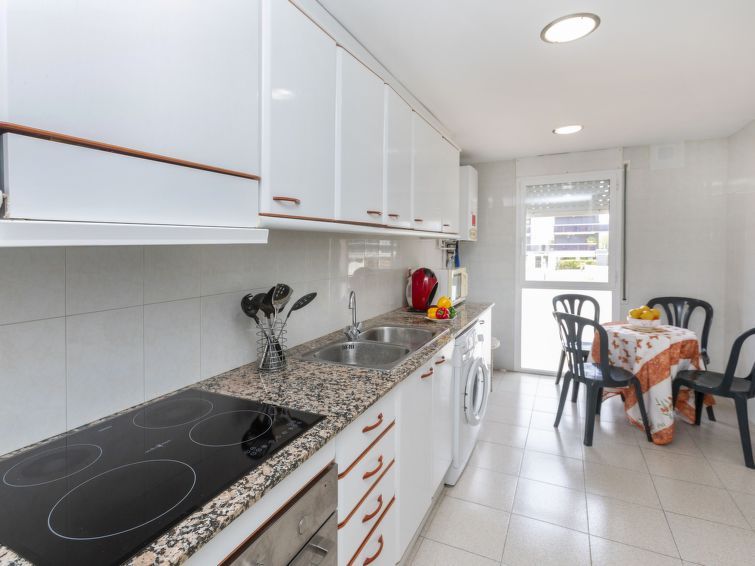 "Puig Sapera", 4-room apartment 85 m2 on 1st floor. Practical and comfortable furnishings: living/dining room with digital TV. Exit to the terrace. 1 room with 1 french bed (135 cm, length 190 cm), bath/WC. 2 rooms, each room with 2 beds (90 cm, length 190 cm). Large kitchen (oven, dishwasher, 4 ceramic glass hob hotplates, toaster, kettle, microwave, electric coffee machine) with gas heating.