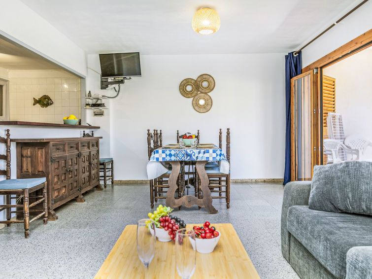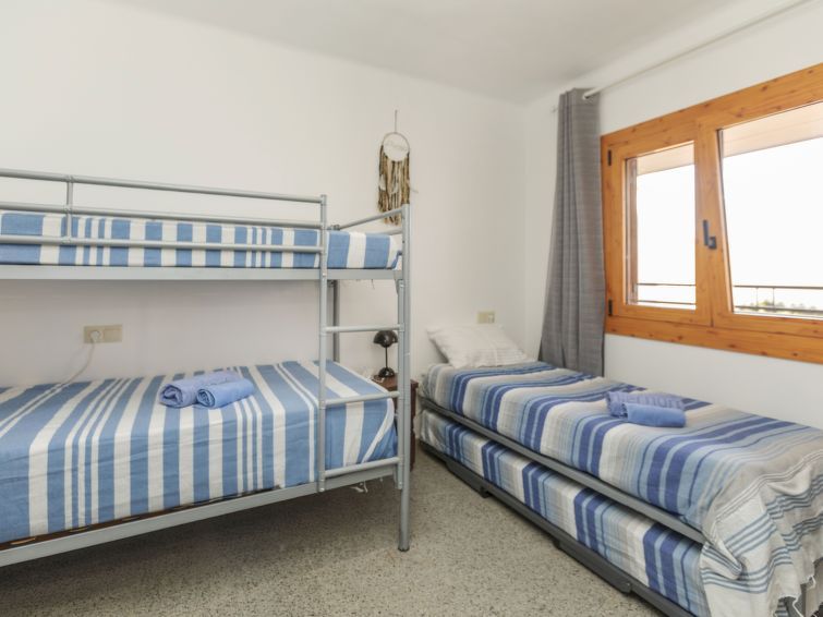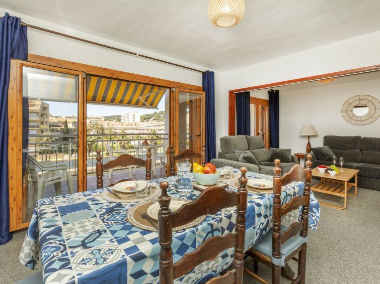 "RieraMar", 3-room apartment 83 m2. Bright, partly renovated in 2025, practical and comfortable furnishings: living/dining room with satellite TV. Exit to the loggia. 1 room with 1 french bed (130 cm, length 190 cm). 1 room with 1 bed (80 cm, length 180 cm), 1 x 2 bunk beds (90 cm, length 190 cm).