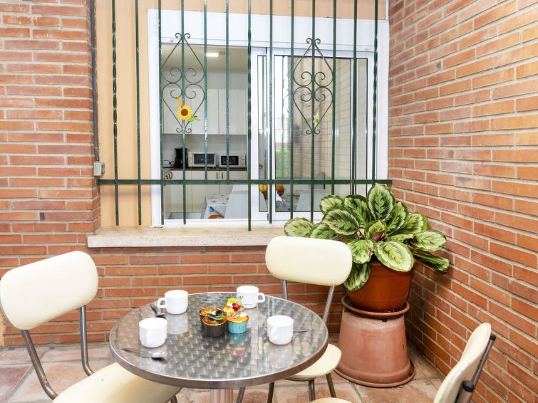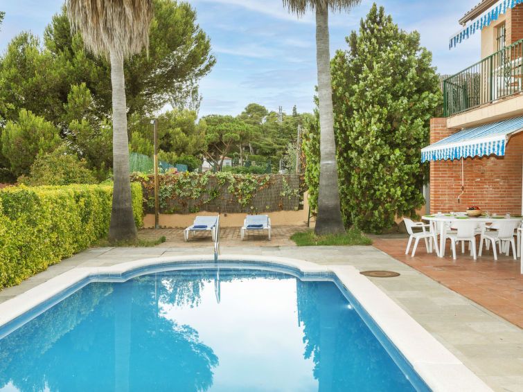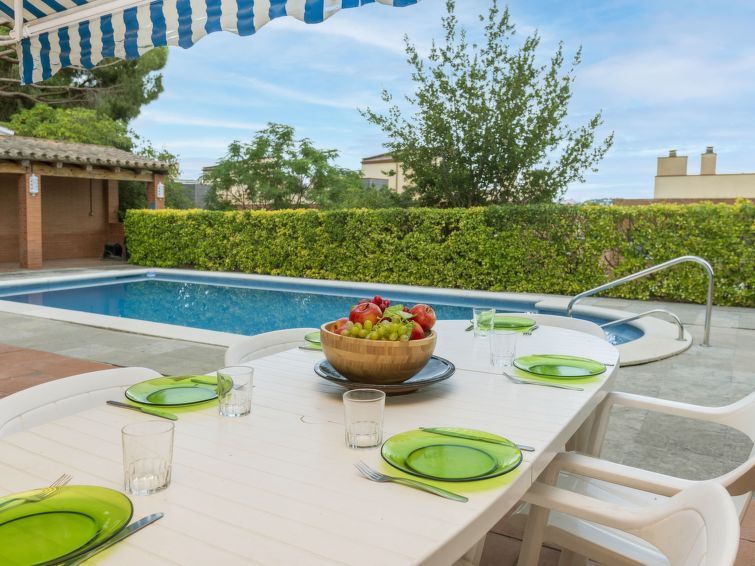 "Rioja", 5-room apartment 120 m2, on the ground floor. Living/dining room with open-hearth fireplace, digital TV, international TV channels, flat screen and air conditioning. Exit to the terrace, to the swimming pool. 2 rooms, each room with 2 beds (80 cm, length 180 cm). 1 room with 1 french bed (135 cm, length 190 cm), shower/WC.