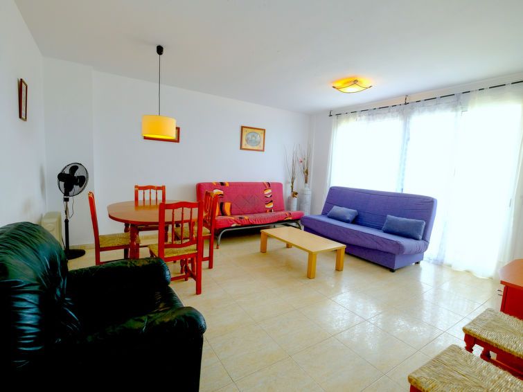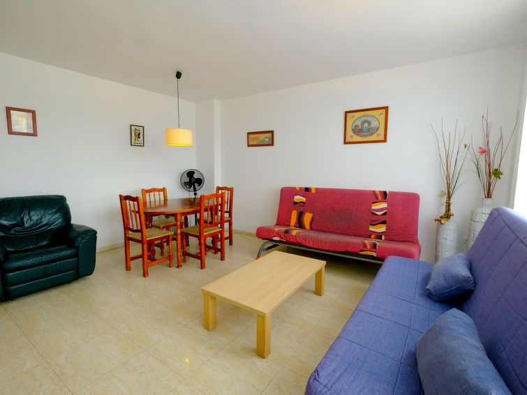 "Pasarela", 4-room apartment 110 m2. Comfortable and cosy furnishings: living/dining room with 1 sofabed, dining table and digital TV. Exit to the balcony. 1 room with 1 french bed (135 cm). Exit to the balcony. 1 room with 2 beds (90 cm). 1 room with 2 beds (90 cm). Kitchen (oven, 4 ceramic glass hob hotplates, toaster, microwave, electric coffee machine).