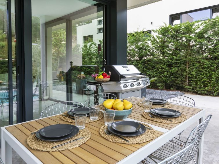 "Alyssa", 4-room house 200 m2 on 3 levels. Practical and tasteful furnishings: living/dining room with air conditioning. Exit to the terrace, to the swimming pool. 1 room with 2 beds (90 cm, length 190 cm), air conditioning. 1 room with 1 french bed (160 cm, length 190 cm), shower/WC and air conditioning.