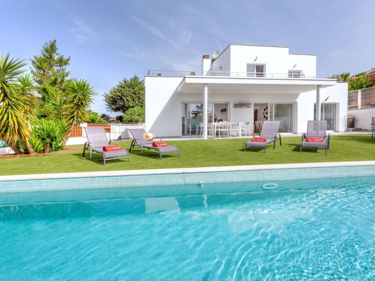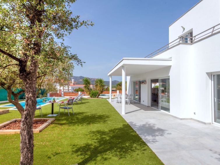 Beautiful White House furnished with taste, each bedroom having its own bathroom. Beautiful terrace upstairs and garden. Very practical covered garage. We enjoyed the BBQ provided. The swimming pool is wonderful. The least: just the synthetic turf.