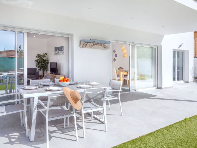 "Almendro", 4-room house 210 m2 on 2 levels. Practical furnishings: living/dining room with satellite TV. Exit to the garden, to the terrace, to the swimming pool. 1 room with 1 french bed (160 cm, length 200 cm), shower/WC and air conditioning. Exit to the garden, to the terrace, to the swimming pool.