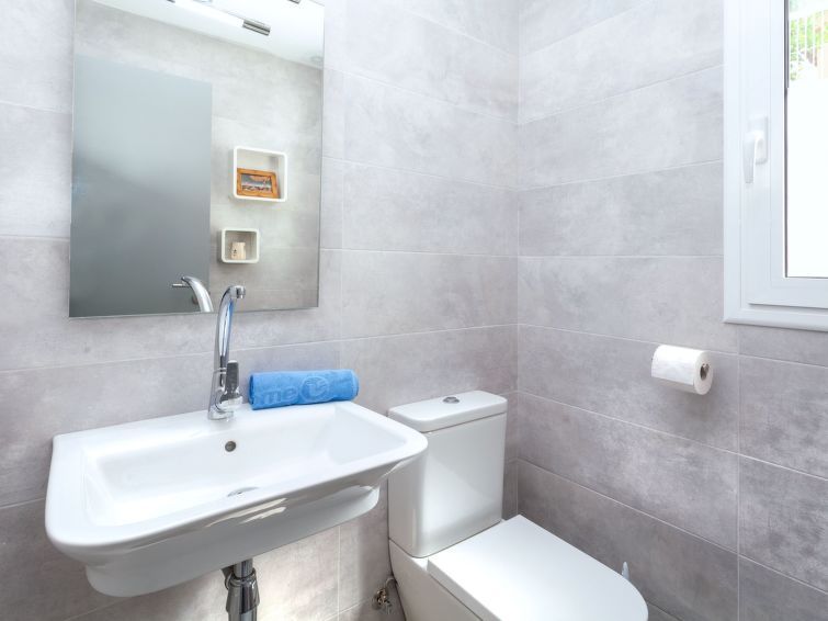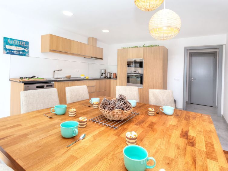 Beautiful and well-kept holiday home. Everything available in the kitchen to cook yourself (pots and pans). Simple but attractive decor. 3 modern bathrooms with toilet and 1 additional toilet on the ground floor. It is handy that there is a garage to store your car so that it always remains cool. There is also a large and beautiful roof terrace. Well located to go to the supermarket due to the limited distance. You can walk or cycle on the nearby vie verdes (green roads without car traffic).