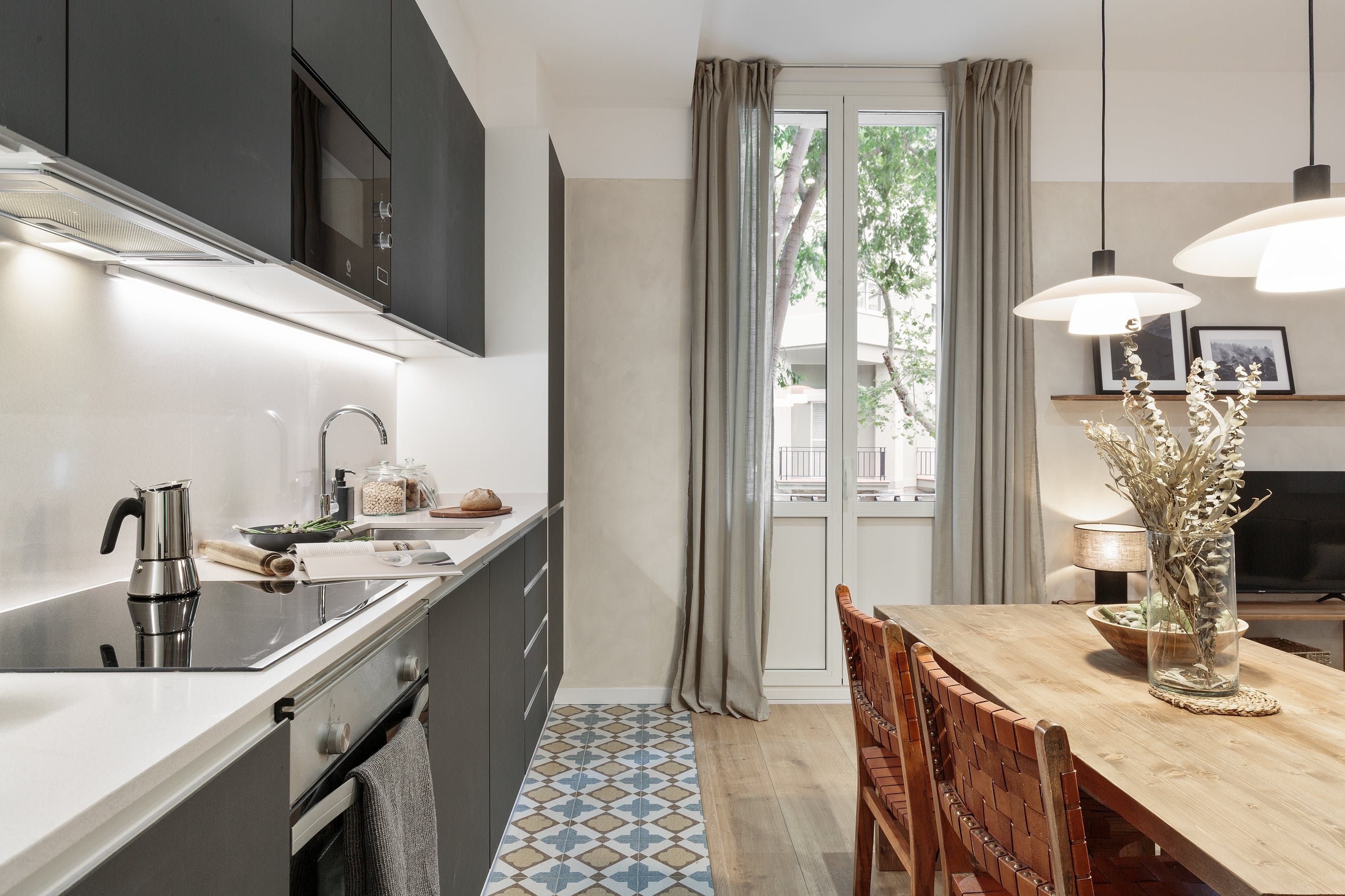 Step inside this apartment and you’ll feel instantly at home thanks to the warm tones and inviting design. From here, you can relax in the living room while listening to the sound of your favourite playlist. There is also a dedicated desk in the single room – making this a great option for remote workers. It’s worth noting there is no private parking here, but you will find great public transport links. It’s also just a short stroll through the vibrant streets of Sant Antoní towards restaurants, bars and shops.