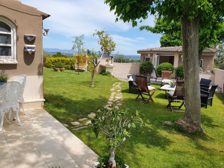 "Ca Romeu", 9-room house 220 m2. Spacious, comfortable and wooden furniture furnishings: living room with digital TV. Exit to the veranda. 1 room with 2 beds (90 cm, length 190 cm). Exit to the veranda. Dining room with air conditioning. Kitchen (dishwasher, 4 ceramic glass hob hotplates, toaster, kettle, microwave, electric coffee machine).