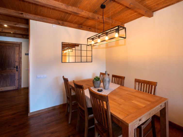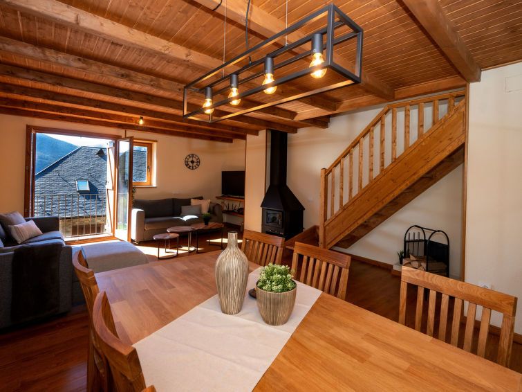 "Peak", 4-room apartment 82 m2. Modern and rustic furnishings: living/dining room with open-hearth fireplace, dining table, digital TV and gas heating. Exit to the balcony. Kitchen (oven, 4 ceramic glass hob hotplates, toaster, microwave, electric coffee machine) with dining table.