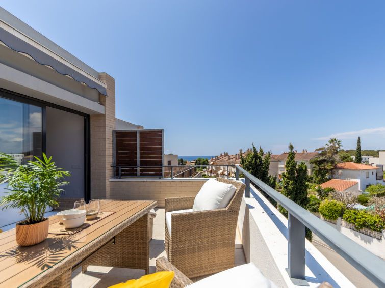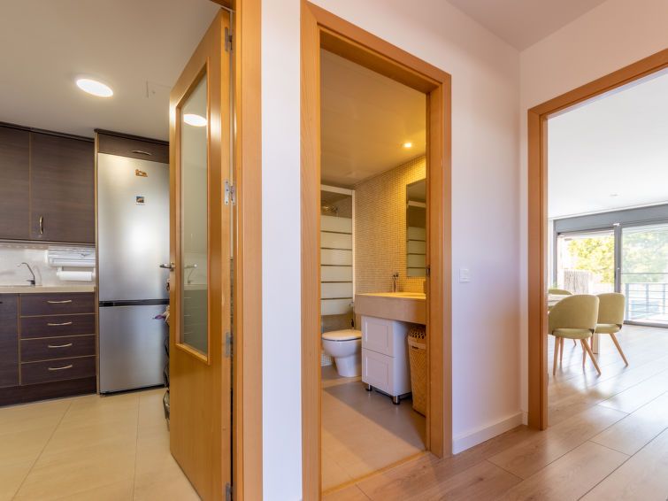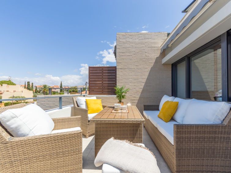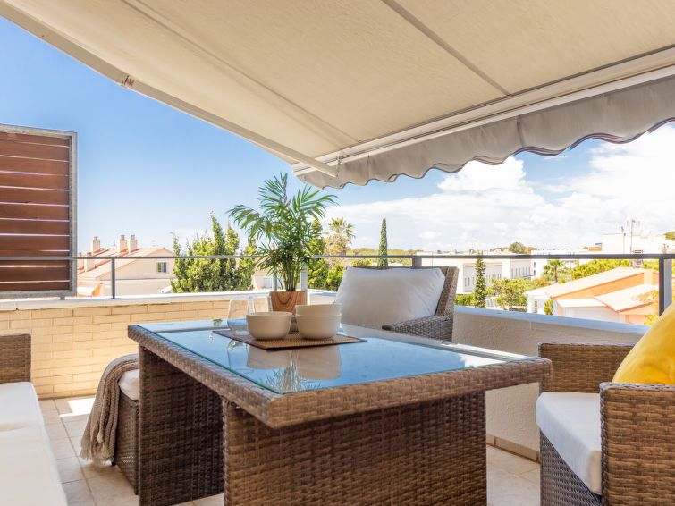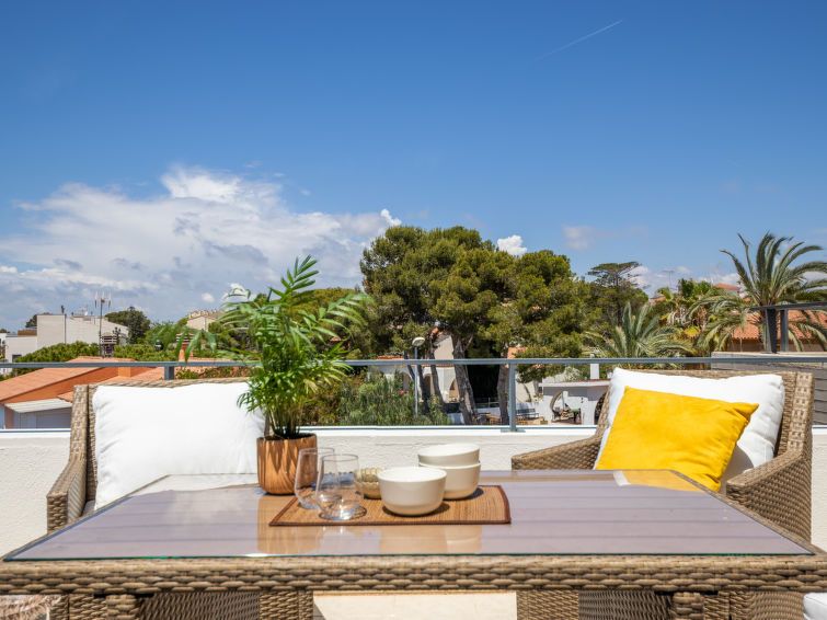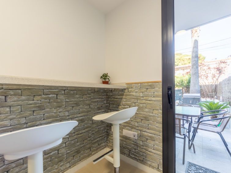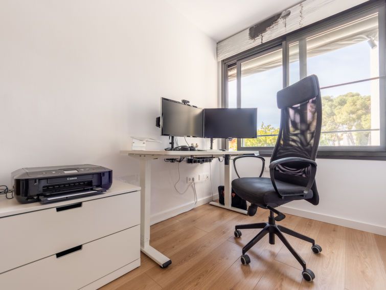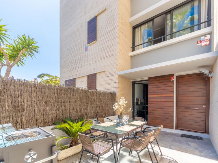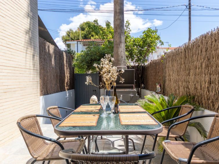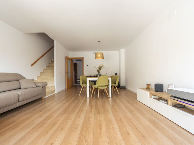 "Palmera dels Munts", 5-room terraced house 124 m2 on 3 levels. Object suitable for 4 adults + 2 children. Bright, very comfortable and cosy furnishings: living/dining room with TV and digital TV (flat screen). Exit to the patio. Kitchen (oven, dishwasher, 4 induction hot plates, toaster, kettle, microwave, electric coffee machine).