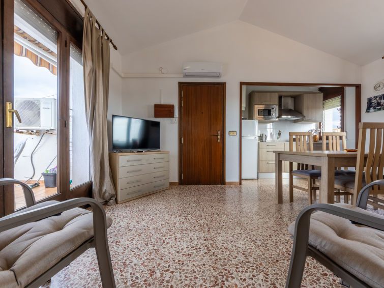 "Drassanes III", 3-room apartment 42 m2 on 3rd floor. Object suitable for 4 adults. Partly renovated in 2017, practical and cosy furnishings: living/dining room with digital TV and air conditioning. Exit to the terrace. 2 rooms, each room with 1 french bed (135 cm, length 180 cm).