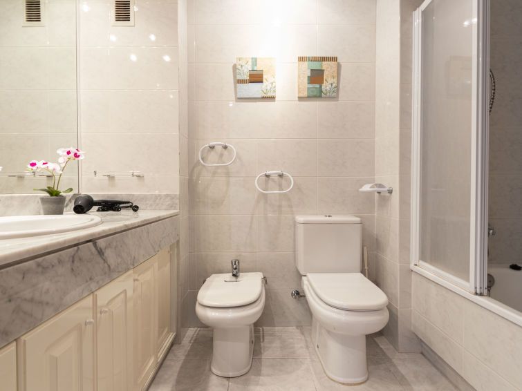The apartment is very spacious, everything was very clean, kitchen very well equipped and with plenty of utensils. Beds ok, pillows a bit hard. Plenty of cabinets. Large terrace, the pity is that the pine trees take away the views. First line of the beach with all services nearby, you leave the community to the beach, community pool with little shade. Fair apartment square but a large one entered. recommended for families
