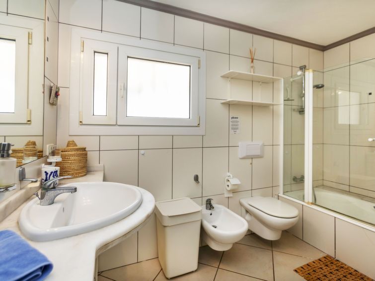 "Acuario", 5-room house 90 m2. Practical and comfortable furnishings: lounge with air conditioning. Exit to the patio. Living/dining room with digital TV and international TV channels. 1 room with 1 bed (80 cm, length 200 cm), 1 double bed (2 x 80 cm, length 200 cm). 1 double bedroom with 1 french bed (160 cm, length 200 cm).