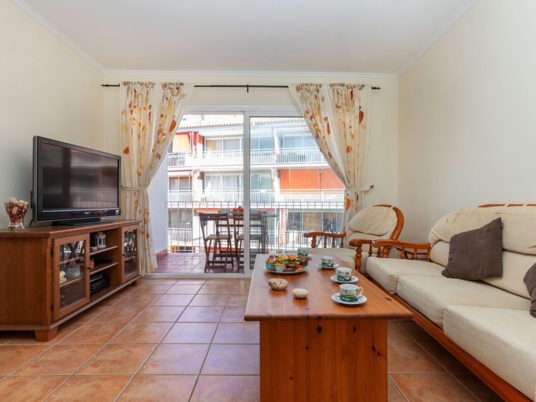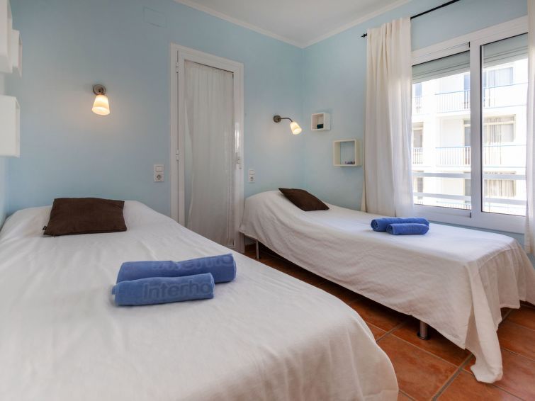 "Llevant", 3-room apartment 45 m2. Bright, practical furnishings: living/dining room with dining table, digital TV and radio. Exit to the balcony, north facing position and east facing position. 1 double bedroom, north-east facing position with 1 french bed (135 cm, length 190 cm).