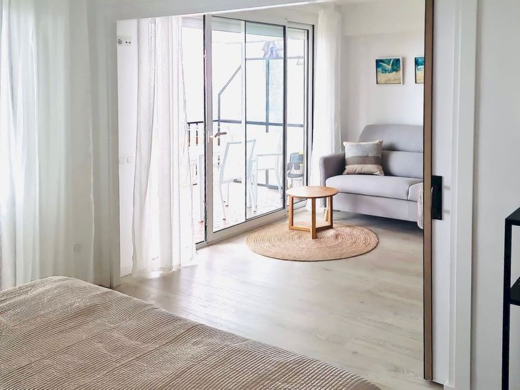 "Loomins studio", 1-room studio 40 m2. Fully renovated in 2025, modern and stylish furnishings: living/dining room with 1 double sofabed (1 x 180 cm, length 200 cm), dining table, digital TV and flat screen. Exit to the terrace, north facing position and east facing position. 1 double bedroom with 1 french bed (180 cm, length 200 cm).
