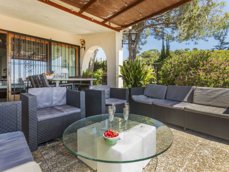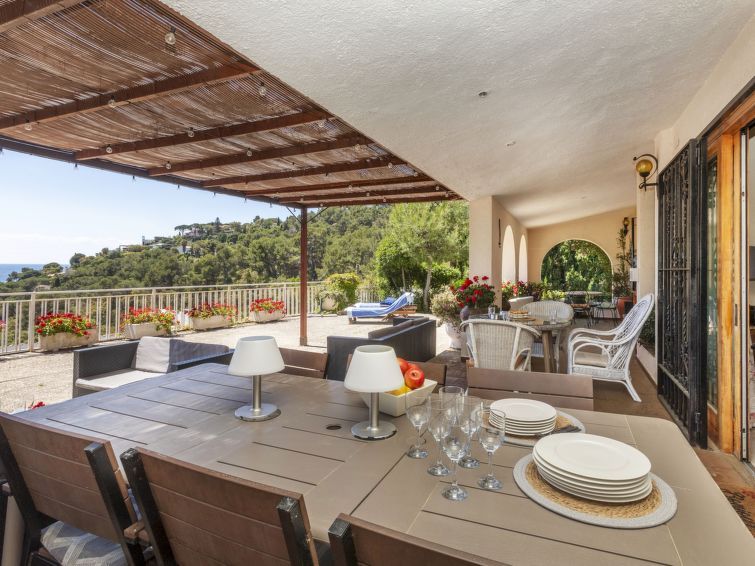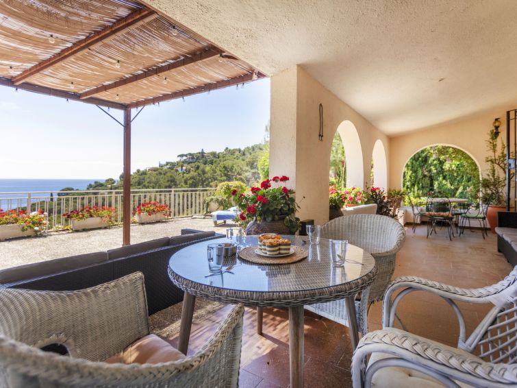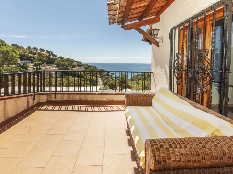"Villa de Arte", 6-room house 200 m2 on 2 levels, south-east facing position. Object suitable for 8 adults + 2 children. Partly renovated in 2015: living/dining room with open-hearth fireplace, dining table, hand-basin, digital TV, electric heating and air conditioning. Exit pergola, to the patio.