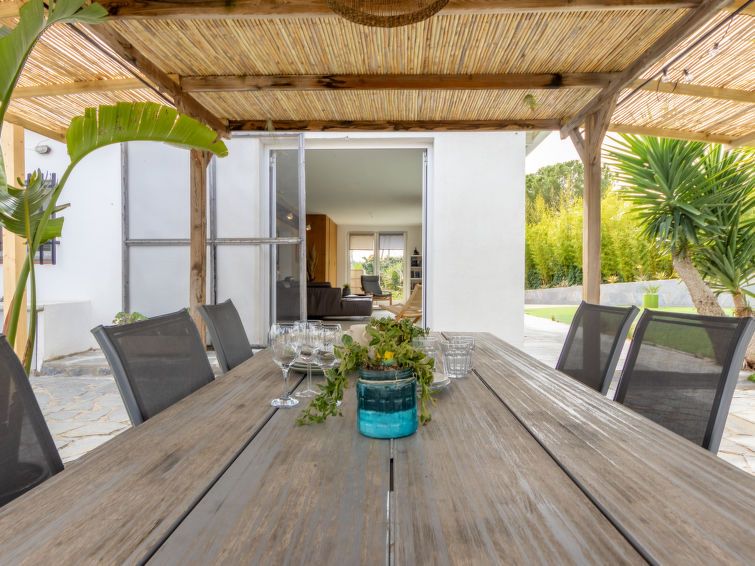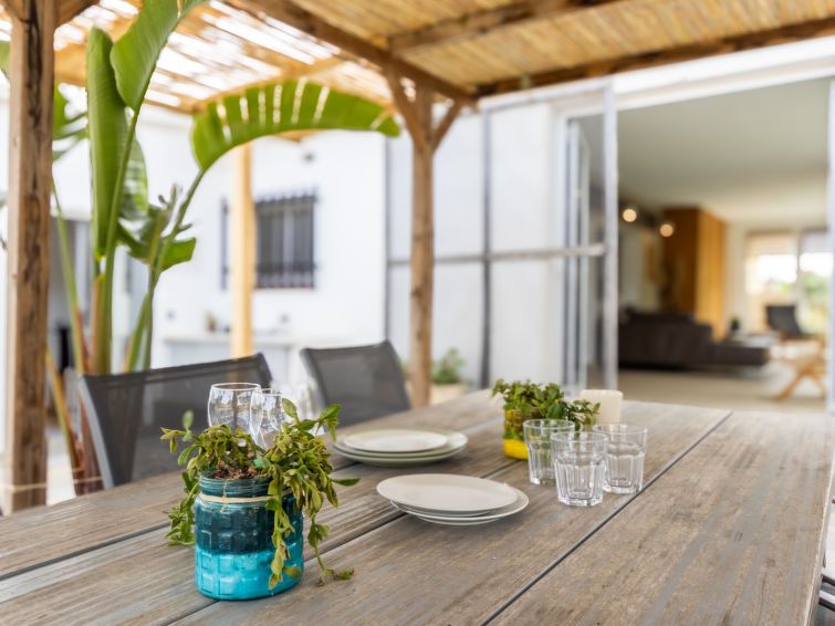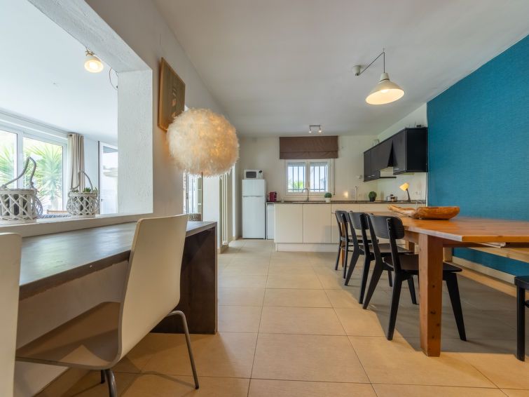 "Dorada", 5-room house 140 m2. Object suitable for 6 adults + 4 children. Spacious and bright, practical and comfortable furnishings: living room with sliding door with digital TV and heating stove. Exit to the garden, to the terrace. 1 room with 1 french bed (1 x 150 cm, length 200 cm), separate WC and fan.