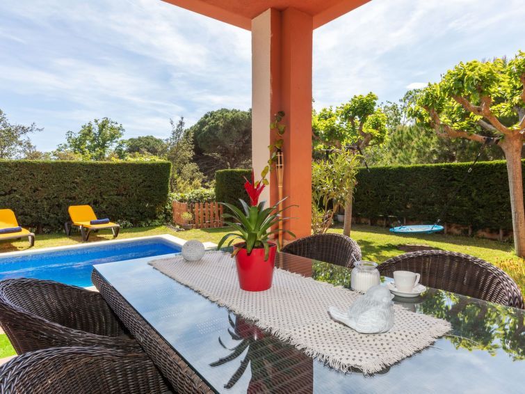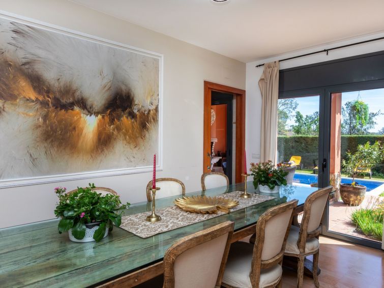 "La Goba Parc", 5-room house 130 m2. Spacious and bright, very comfortable and stylish furnishings: living/dining room with dining table and digital TV. Exit to the patio, to the swimming pool. 1 double bedroom with 1 french bed (150 cm, length 190 cm). 1 double bedroom with 1 french bed (160 cm, length 190 cm).