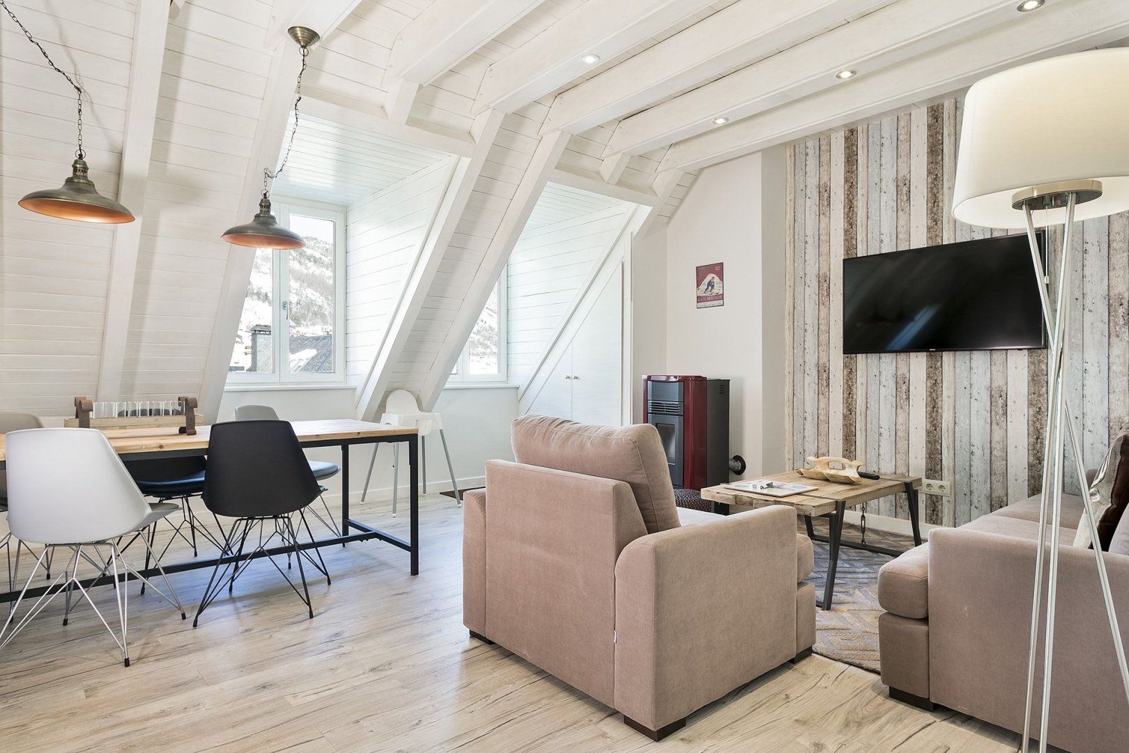 From the mighty peak of Canigó, to the gentle walking trails of the lowlands, the Pyrenees mountain range is a rather spectacular place to spend a holiday. With gorgeous, traditional towns peppered throughout, there’s a postcard-ready scene around every corner. This is especially true of your duplex apartment in Vielha. Less than 50 metres from the Sant Miquèu church, this striking setting couldn’t be any closer to home.