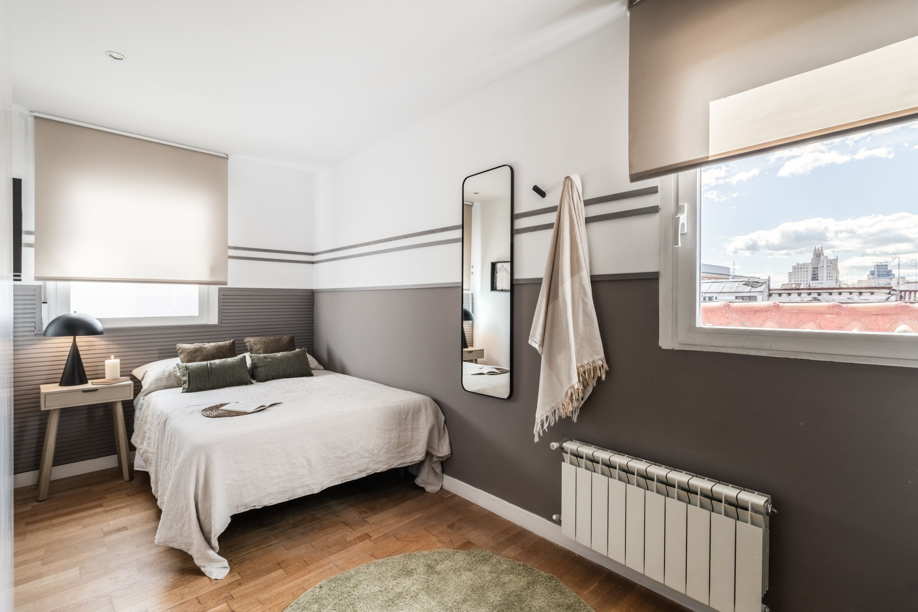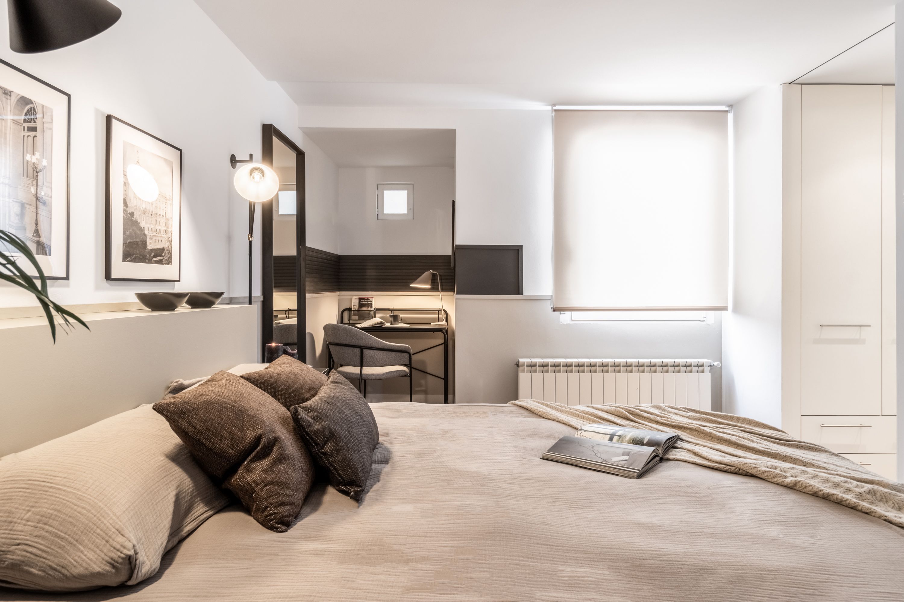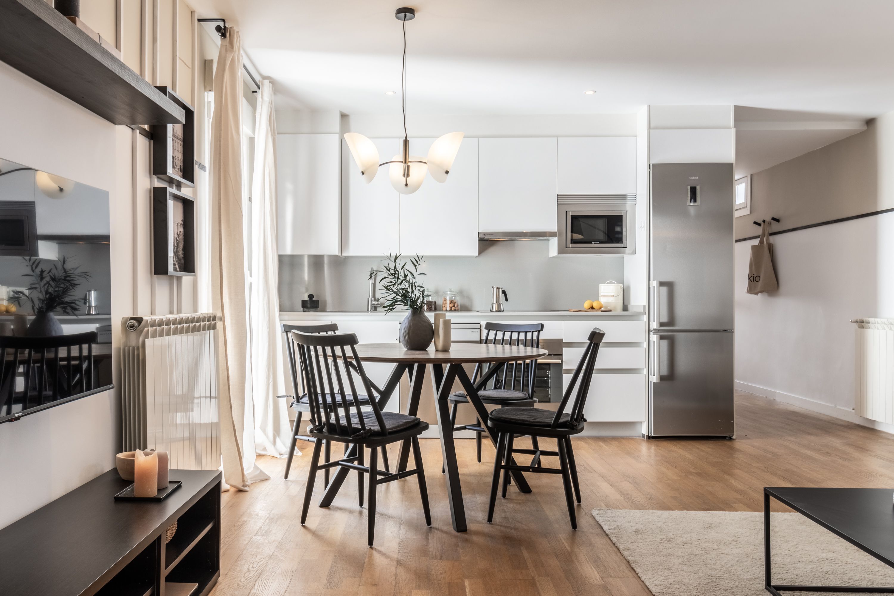 This apartment is located in the Malasaña-Universidad barrio in Madrid. The neighbourhood is known for its mix of 18th-century architecture and contemporary street art. Plaza del Dos de Mayo with its many bars is a short stroll away, while the Conde Duque Cultural Centre and the Chueca district are both within walking distance. The apartment itself has an open-plan living room, while one bedroom has a desk – perfect for catching up on work. The second bedroom is a little bit more compact but has everything you need for a comfortable night's sleep and it has views over the rooftops and city.