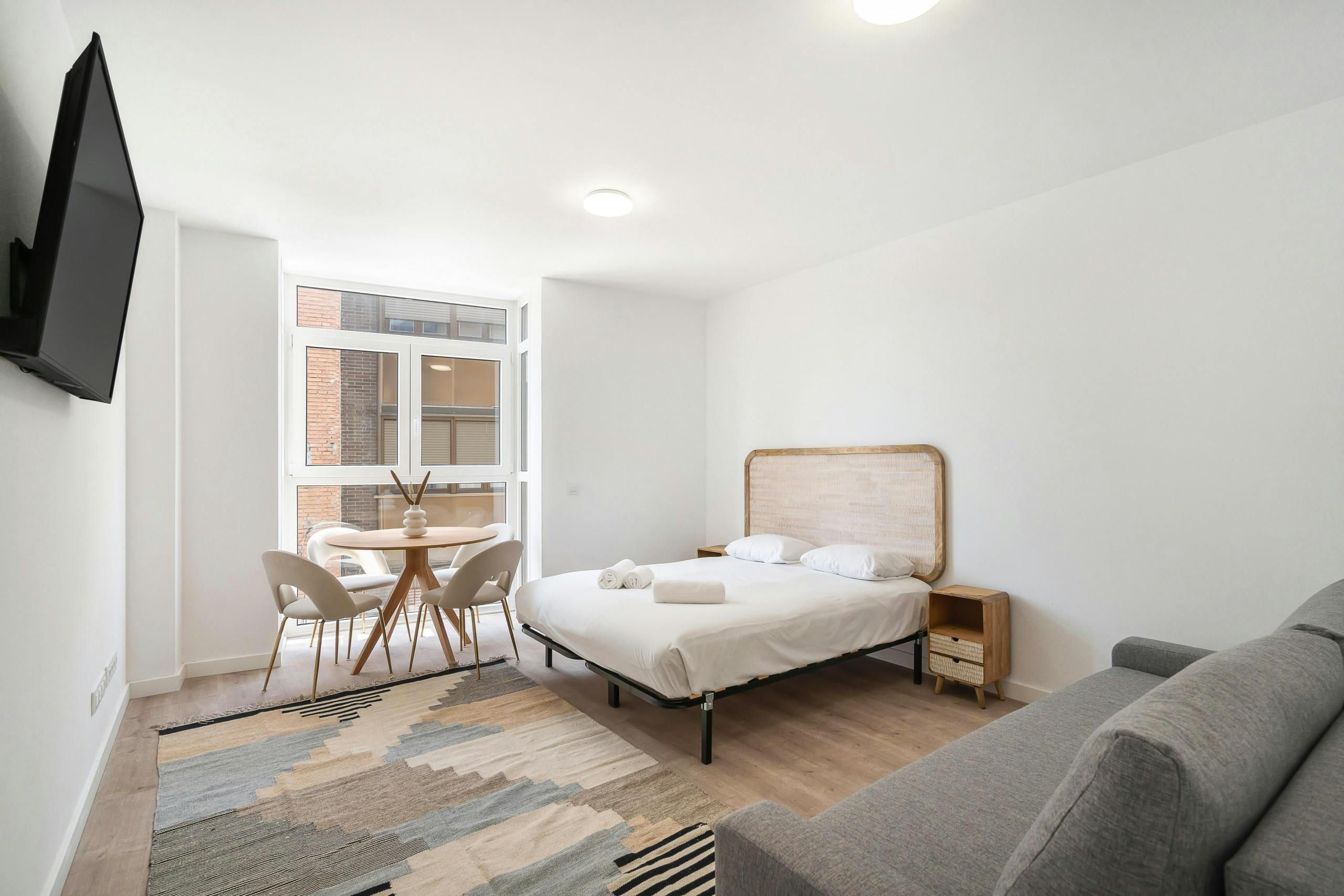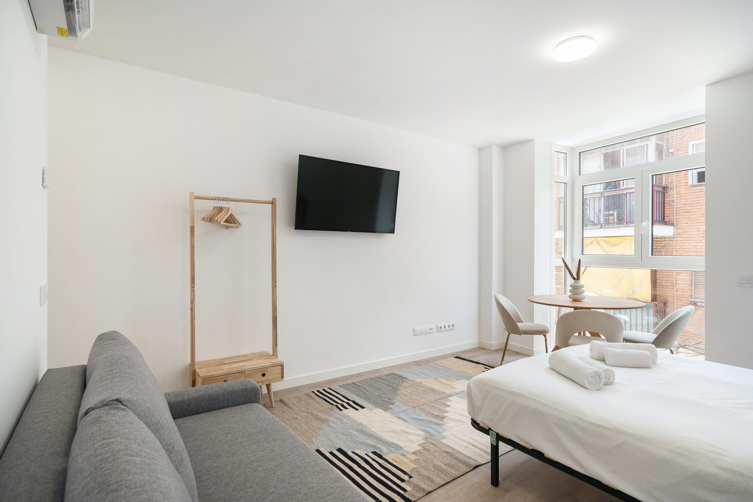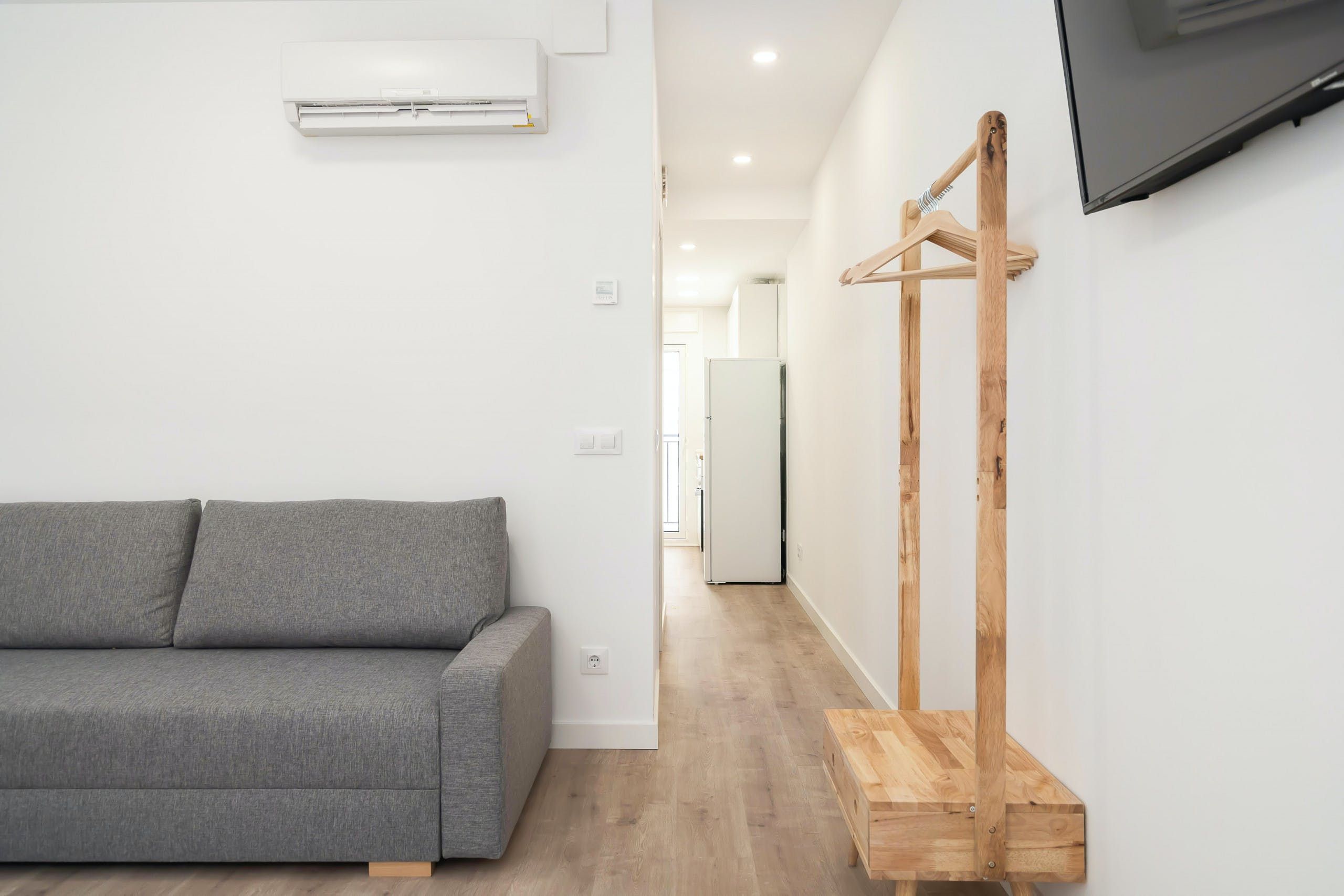 Home truths: *At full occupancy, two guests will be sleeping on the sofa bed. Since the living area doubles up as the bedroom, all four guests will be sleeping in the same room. This space lacks privacy. *Given the home's central spot, expect to hear some street noise throughout your stay. *Purpose-built for rentals, this home is not the most soulful or charming space. *This home overlooks other apartments, so the views aren't the most inspiring.