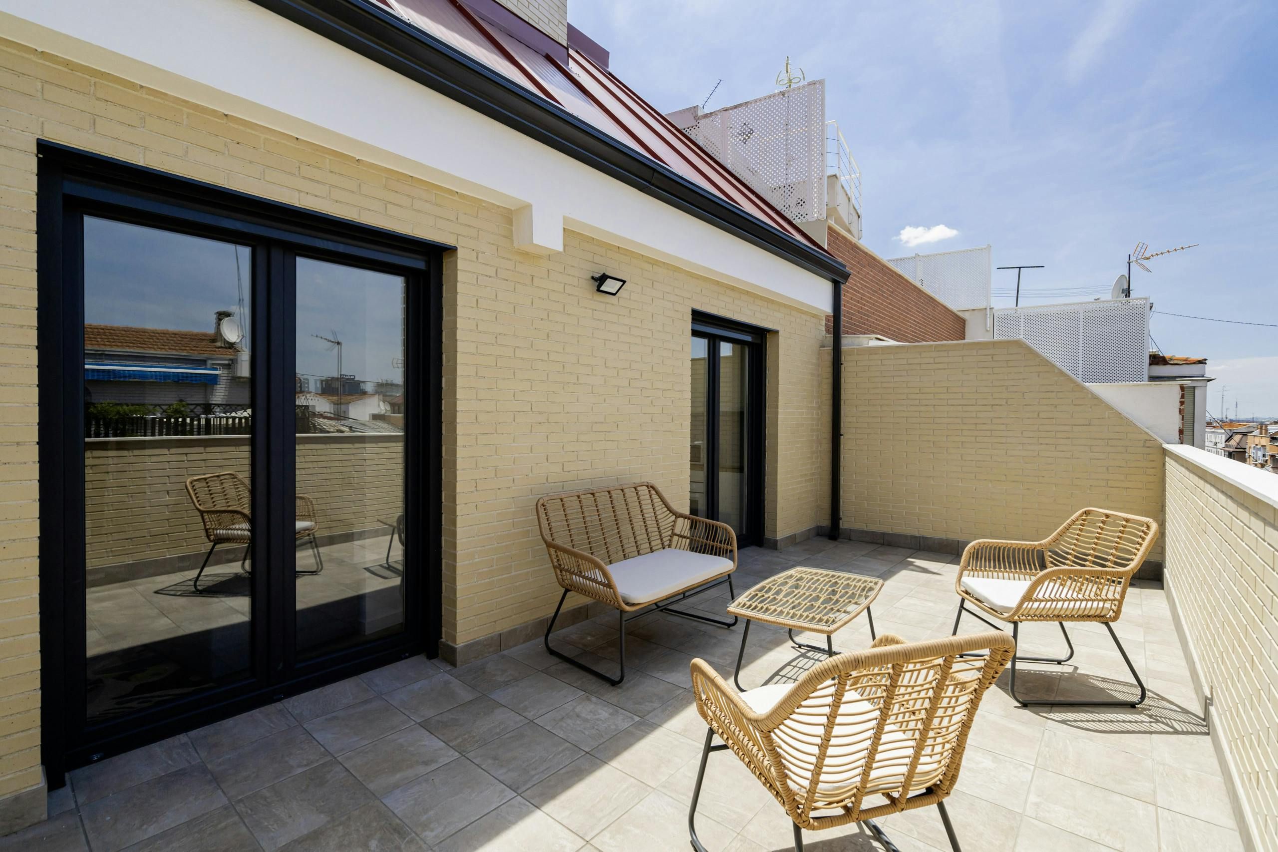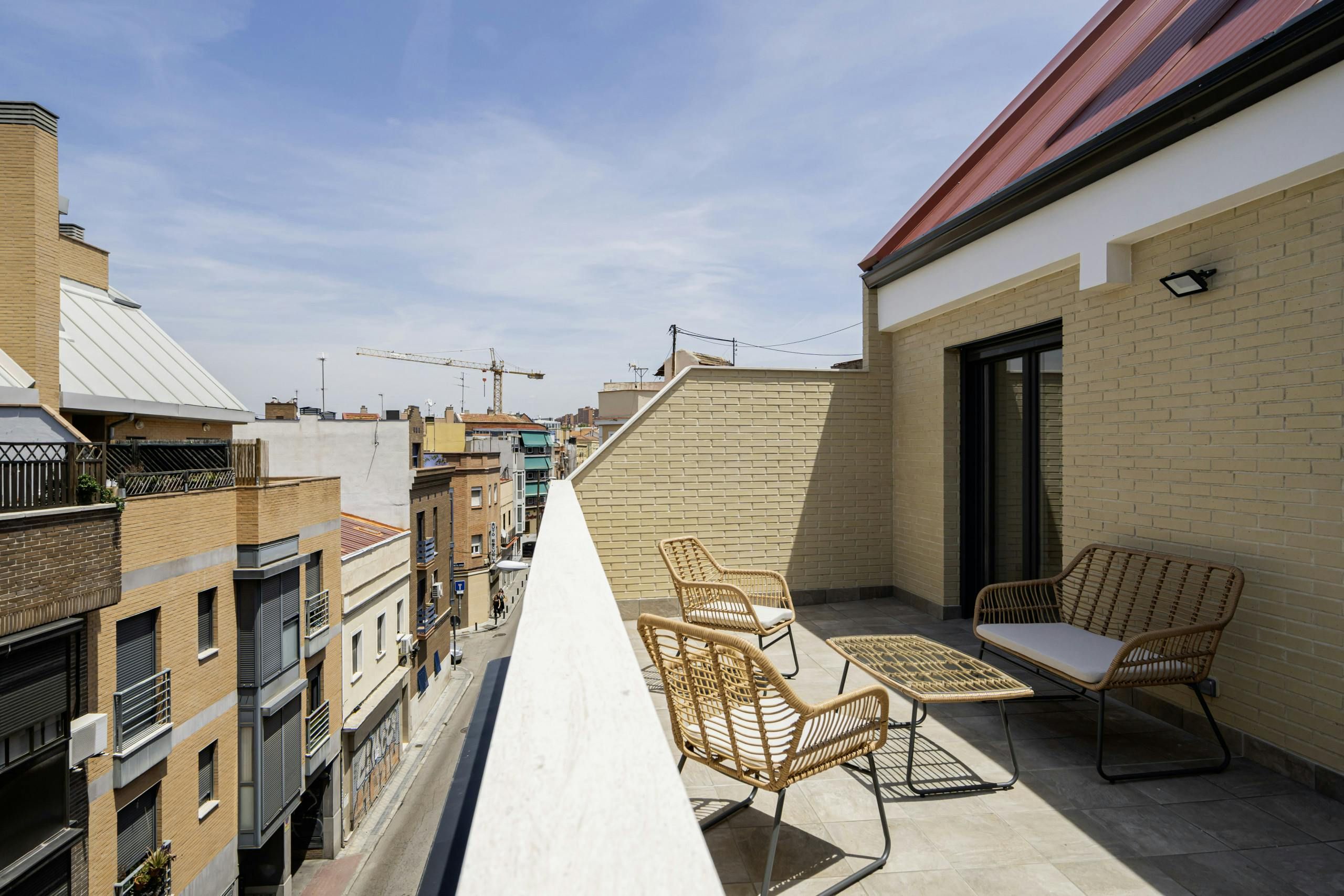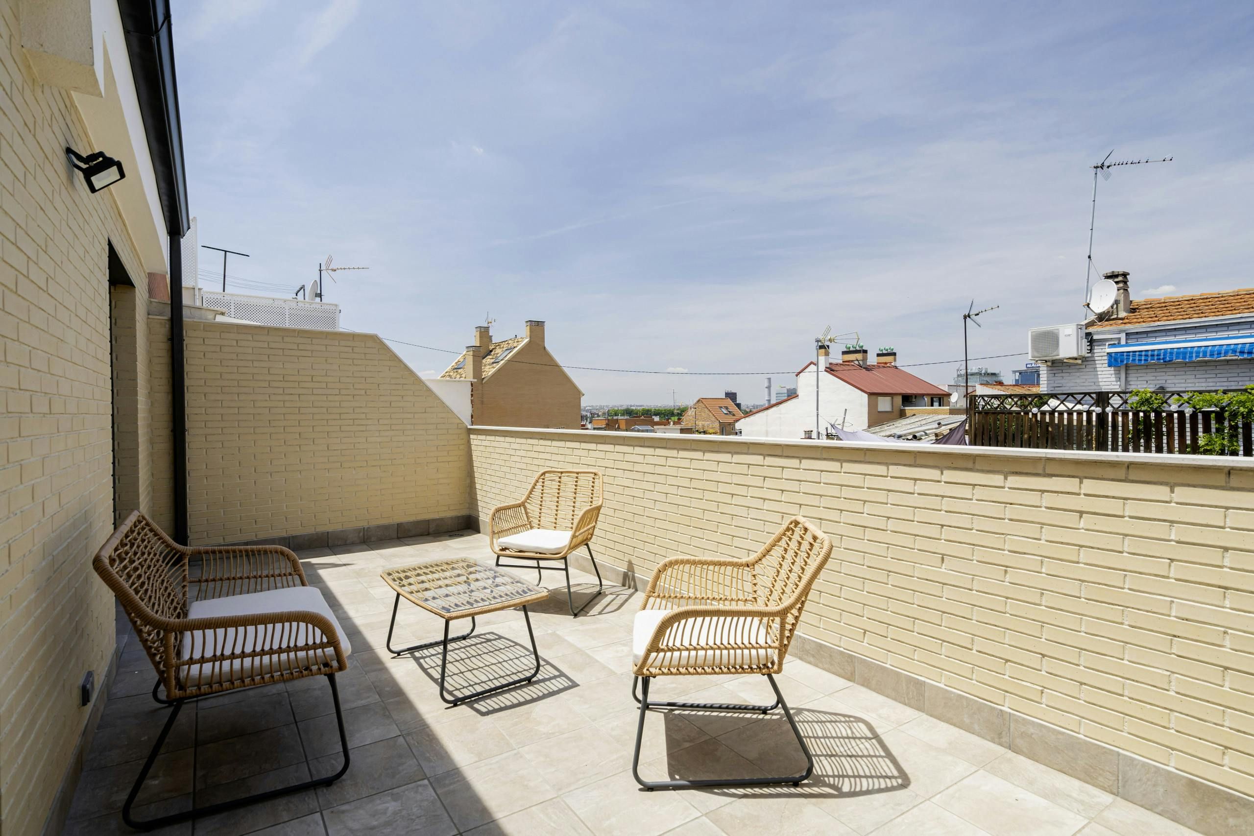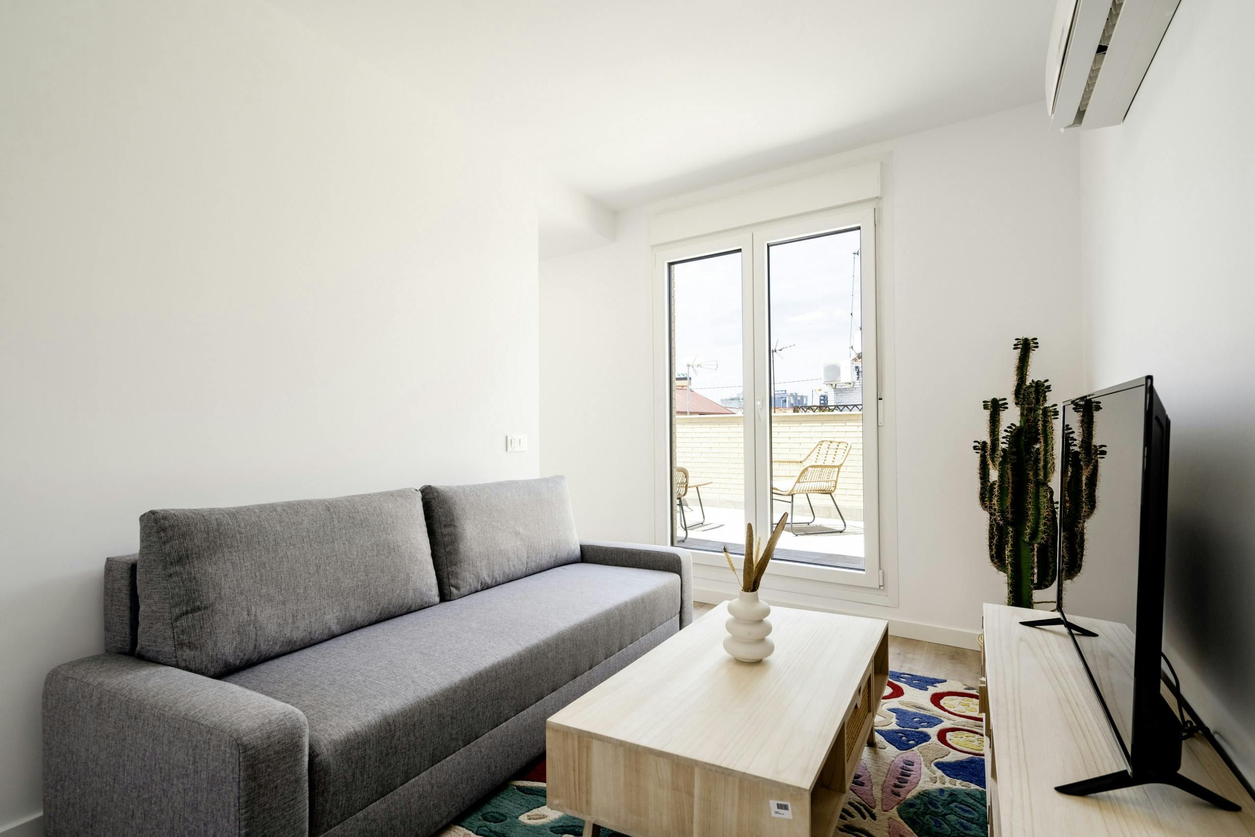 You'll find this apartment on the outskirts of central Madrid, where you can enjoy the peace away from the hustle and bustle but still get there within minutes. Though it isn't the most charming space, it is well-kept and comfortable for a couple or solo wanderer. It can also sleep two more guests on the sofa bed, but it would make it a little less private and a little more cramped. Still, you have a balcony with outdoor seating when you need breathing room. An eight-minute walk will get you to Nueva Numancia, where public transport can help with your exploring needs.