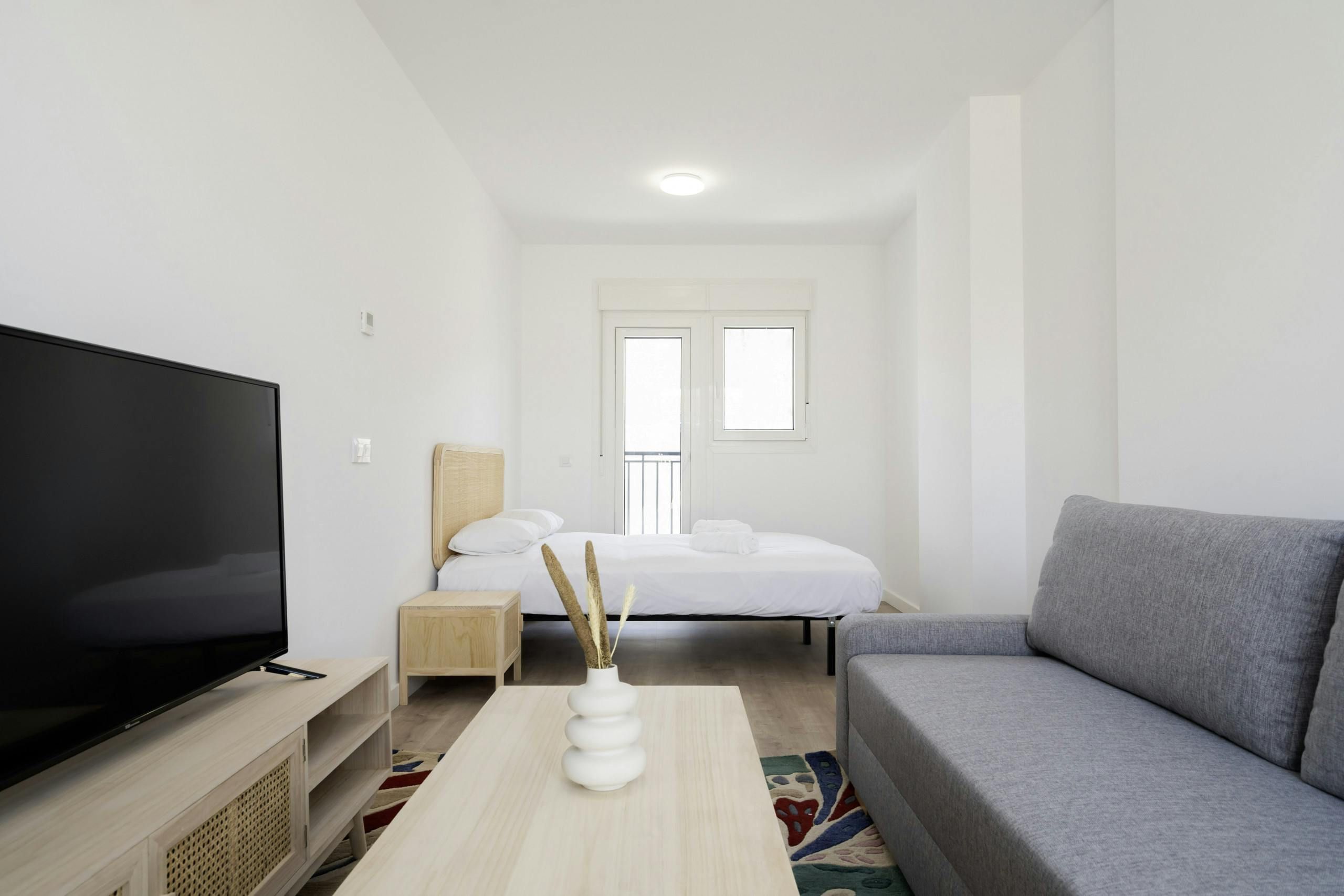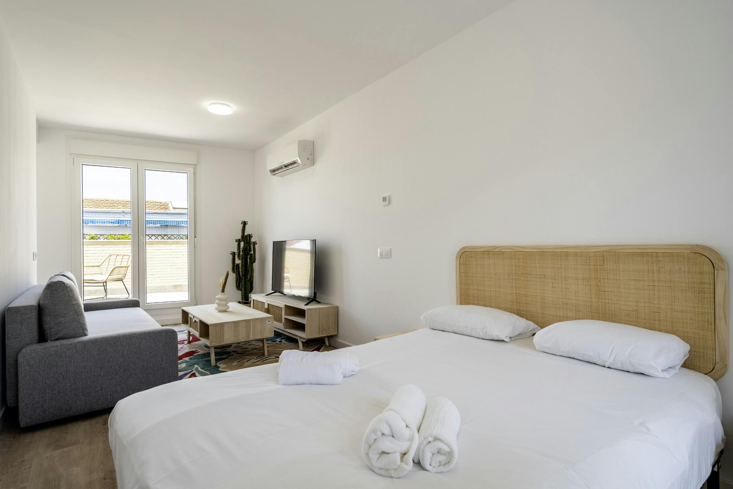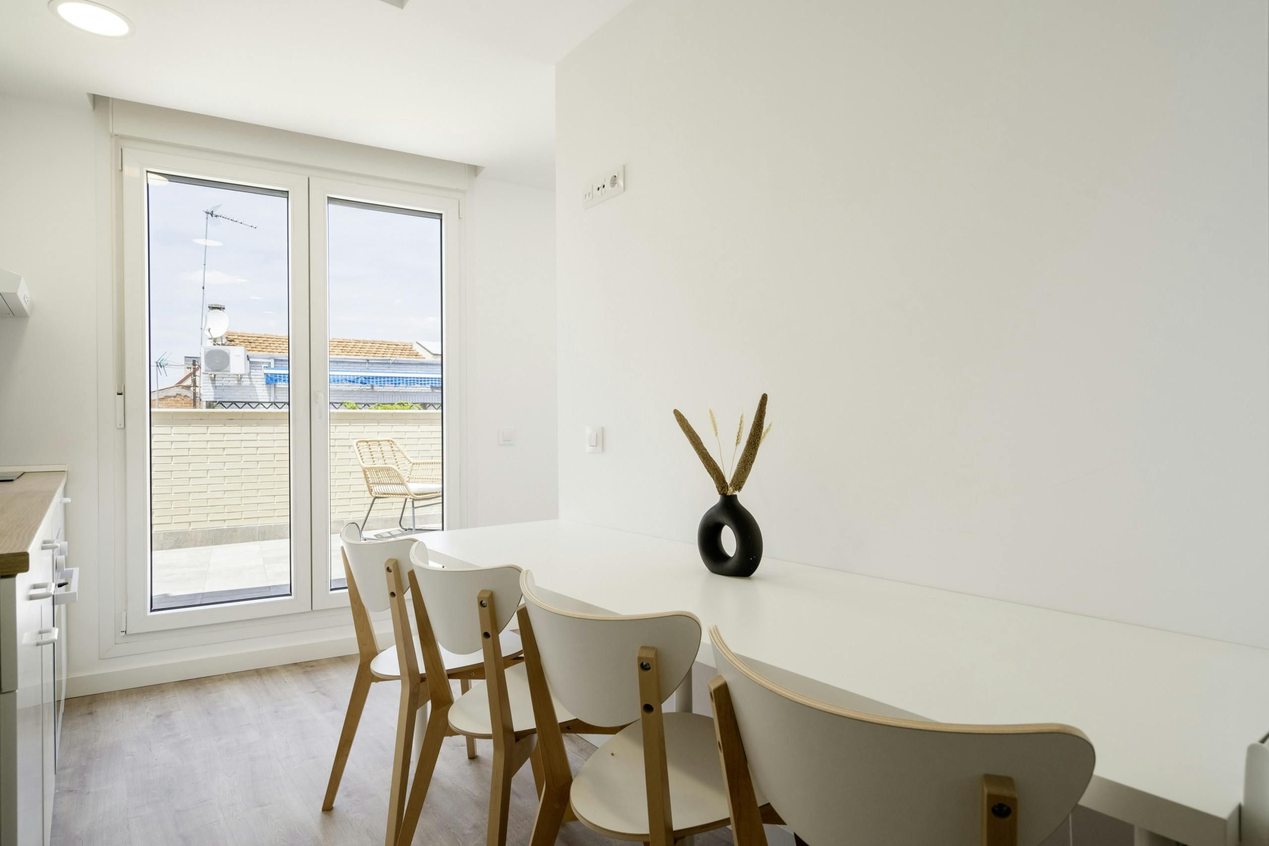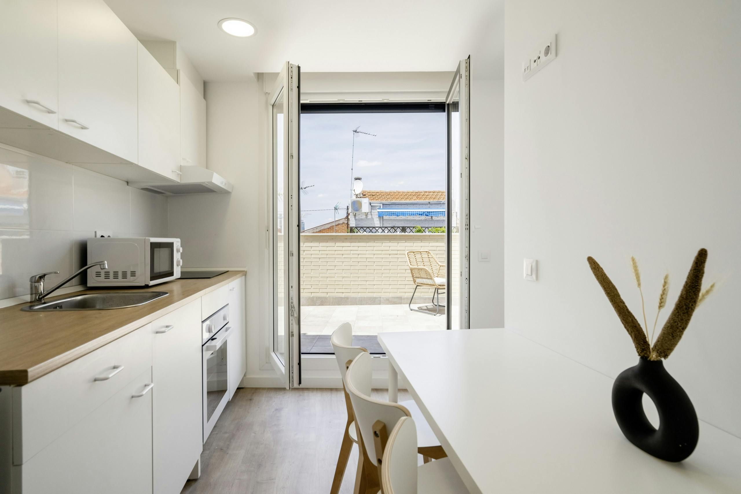 You'll find this apartment on the outskirts of central Madrid, where you can enjoy the peace away from the hustle and bustle but still get there within minutes. Though it isn't the most charming space, it is well-kept and comfortable for a couple or solo wanderer. It can also sleep two more guests on the sofa bed, but it would make it a little less private and a little more cramped. Still, you have a balcony with outdoor seating when you need breathing room. An eight-minute walk will get you to Nueva Numancia, where public transport can help with your exploring needs.