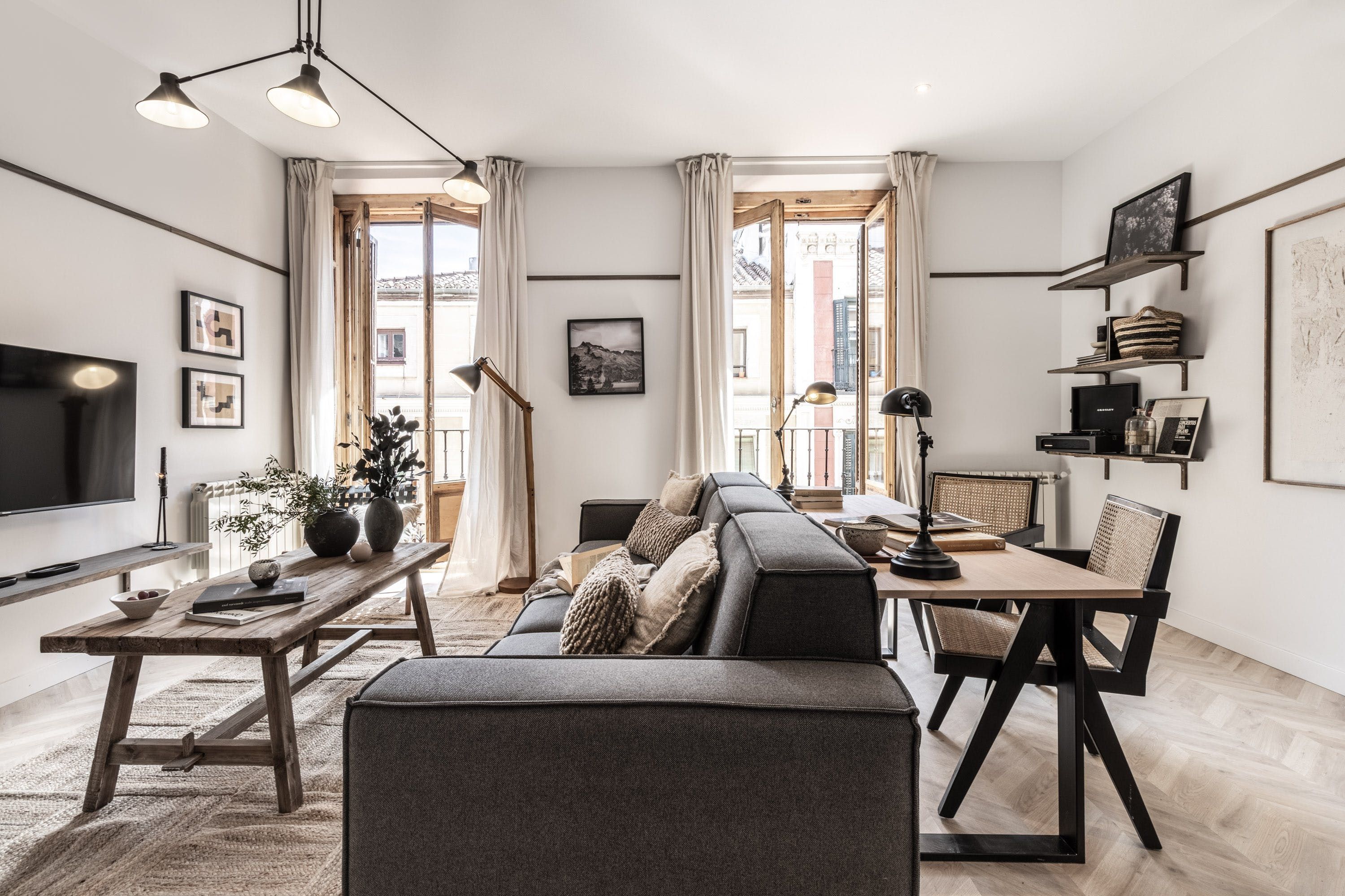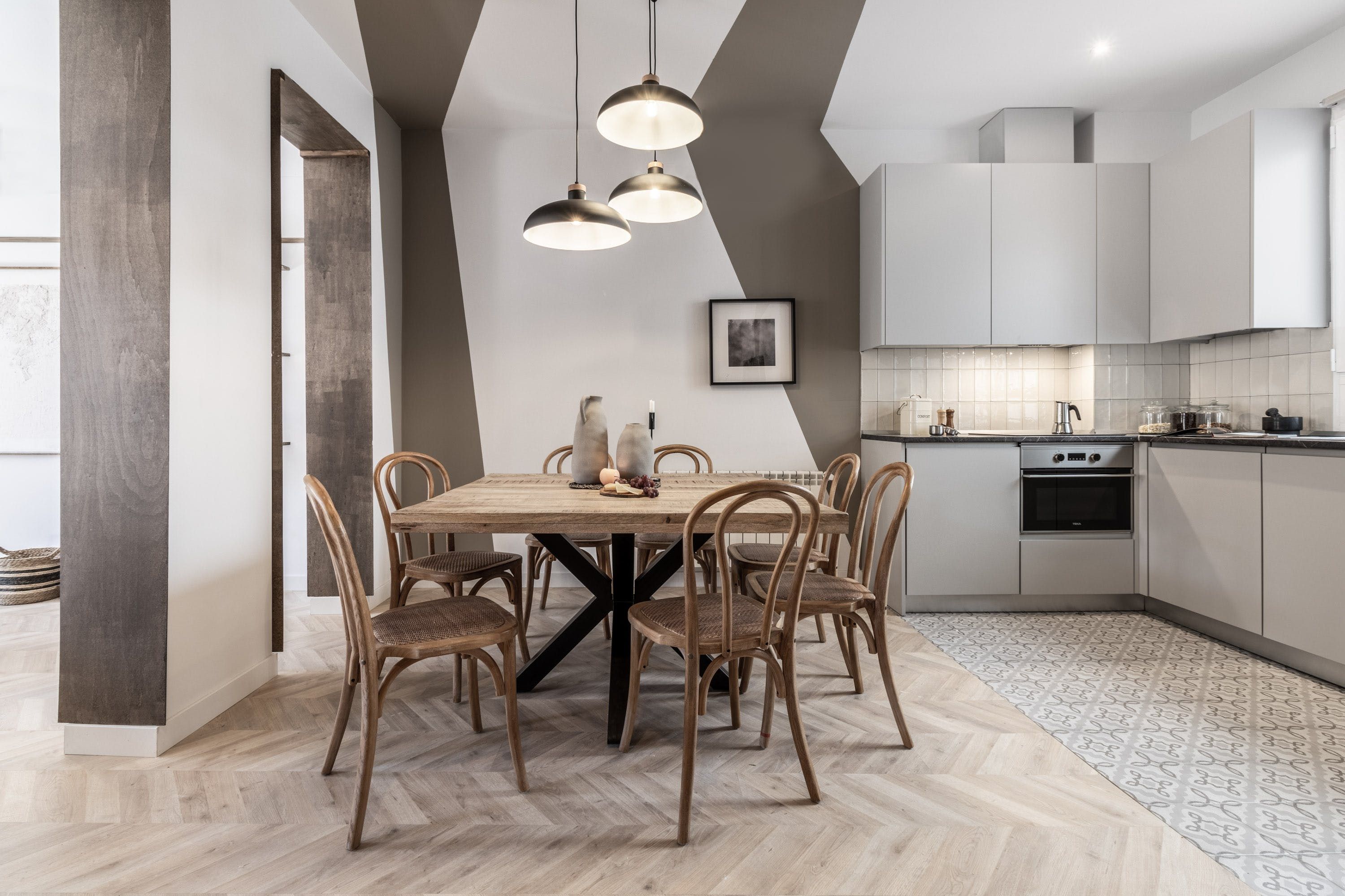 Found in a residential building in the heart of Malasaña, this flat is where hip and happening meets history. Stroll the weekend markets in the historic square to see what we mean. And don't forget to take advantage of the many cafes and bakeries lining the streets here. Of course, you're also close enough to take a longer walk to El Retiro Park, but public transport can help get you there a little quicker. With enough space for eight and the addition of two laptop-friendly desks, this home works for working families or groups of friends coming to explore this vibrant city.
