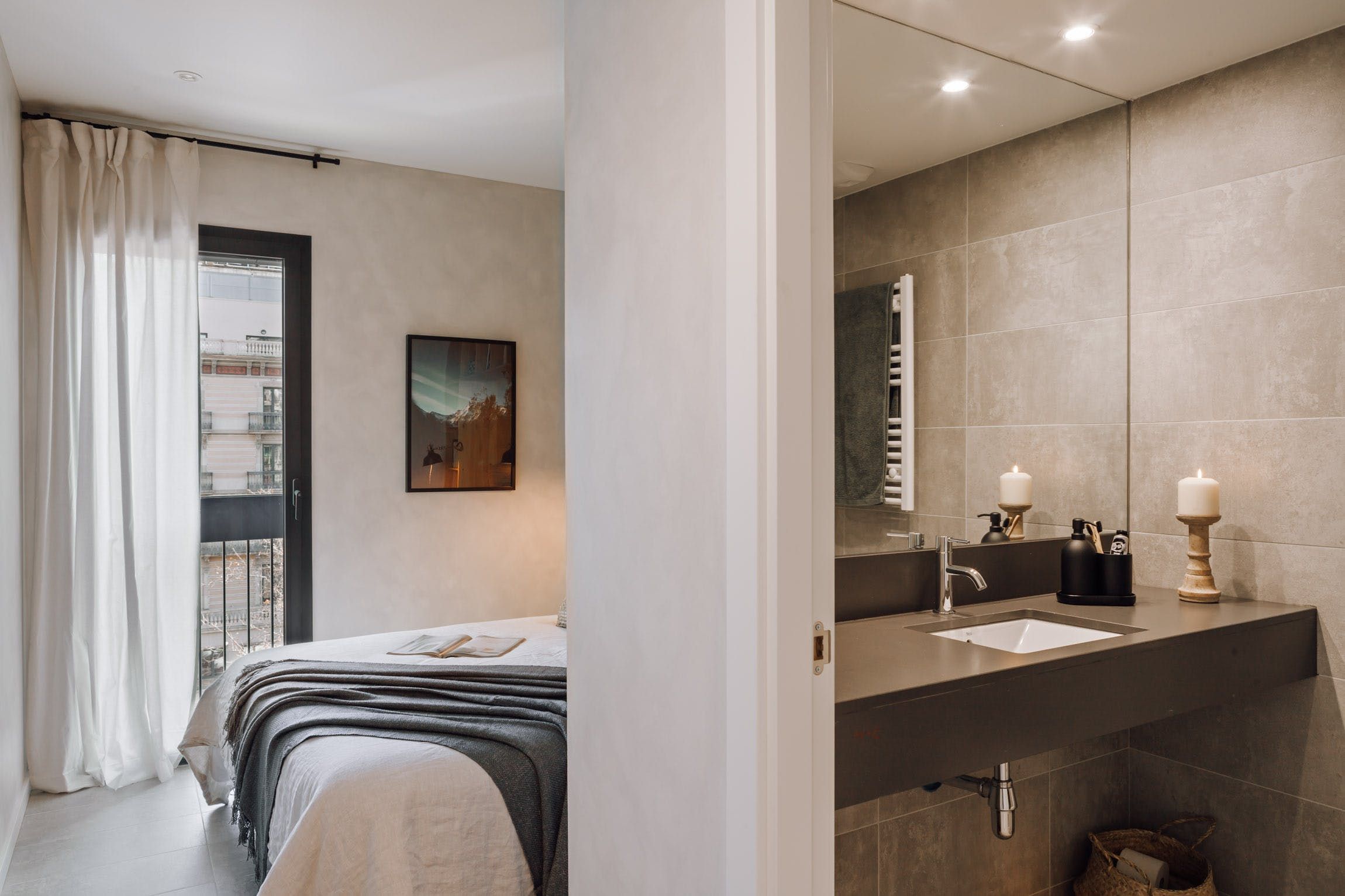 Surrounded by restaurants, bars, boutiques and museums, you won't need to travel far from this Eixample Esquerra home to find your fun. And that's not including the beach and Gothic Quarter, both of which can be reached in less than thirty minutes by metro. Back at home, we think you'll like the chic decor, and the kitchenette is ideal if you want to spend an evening at home after a day on your feet. And if you need to get some work done, the desk by the windows at least lets you enjoy the sunshine while you do it,
