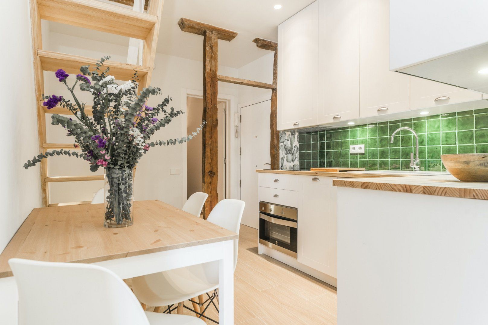 Just a ten–minute walk from the iconic Puerta del Sol and Plaza Mayor, this is a wonderful place to experience the cultural depth and beauty of the surroundings. And as soon as you step inside, you’ll want to pause and admire the details that make this home unique. From the traditional wooden beams to the elegant styling, every detail inspires a sense of warmth and ease. And whether you’re preparing a Spanish-inspired meal or relaxing on the sofa, there’s a lovely sense of harmony that makes it easy to settle in.