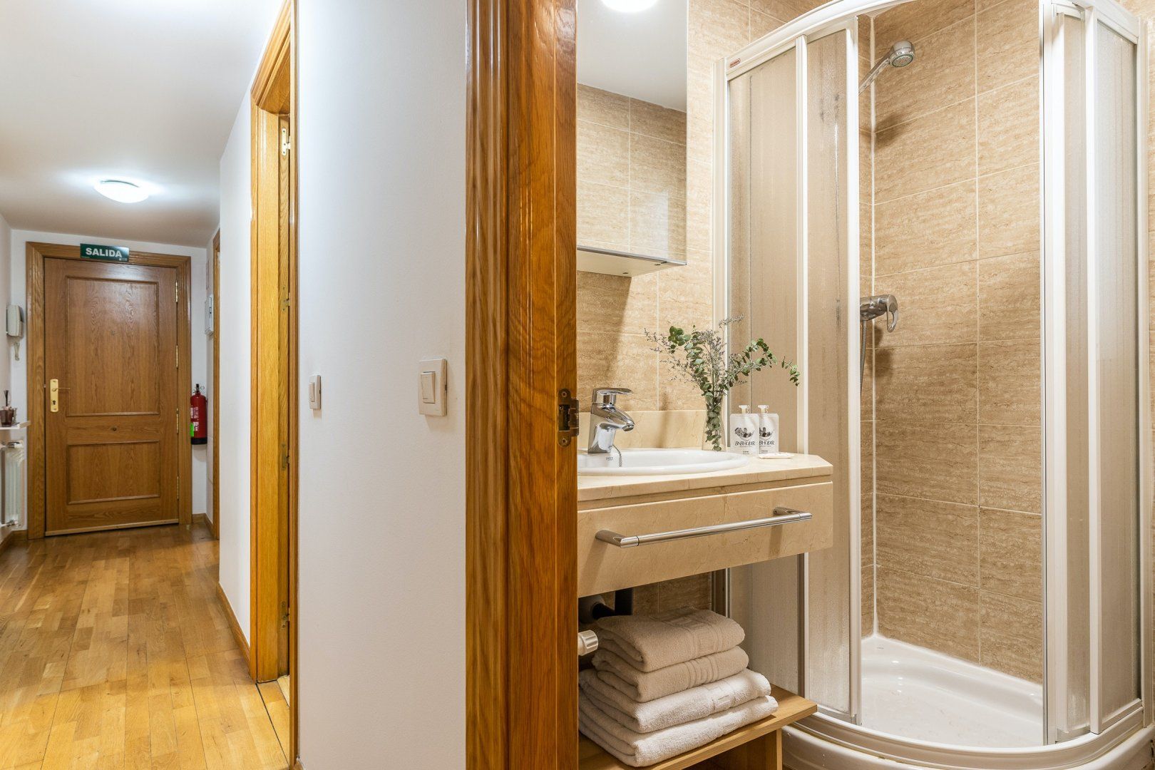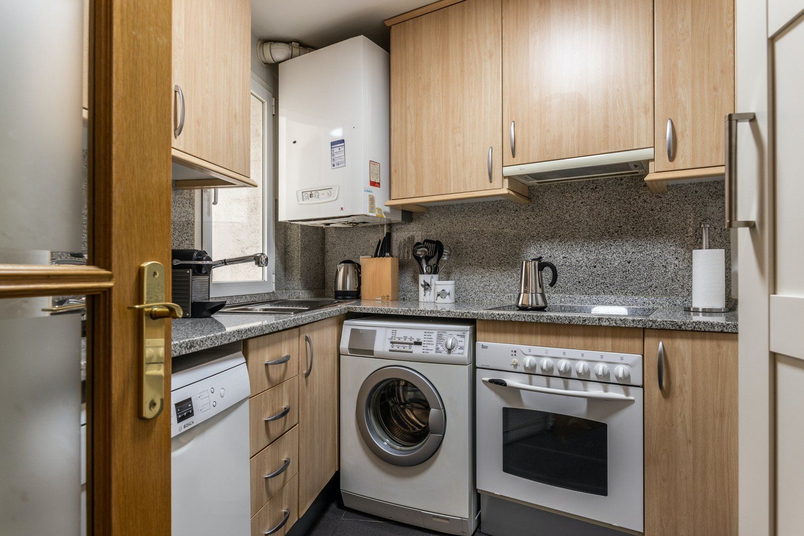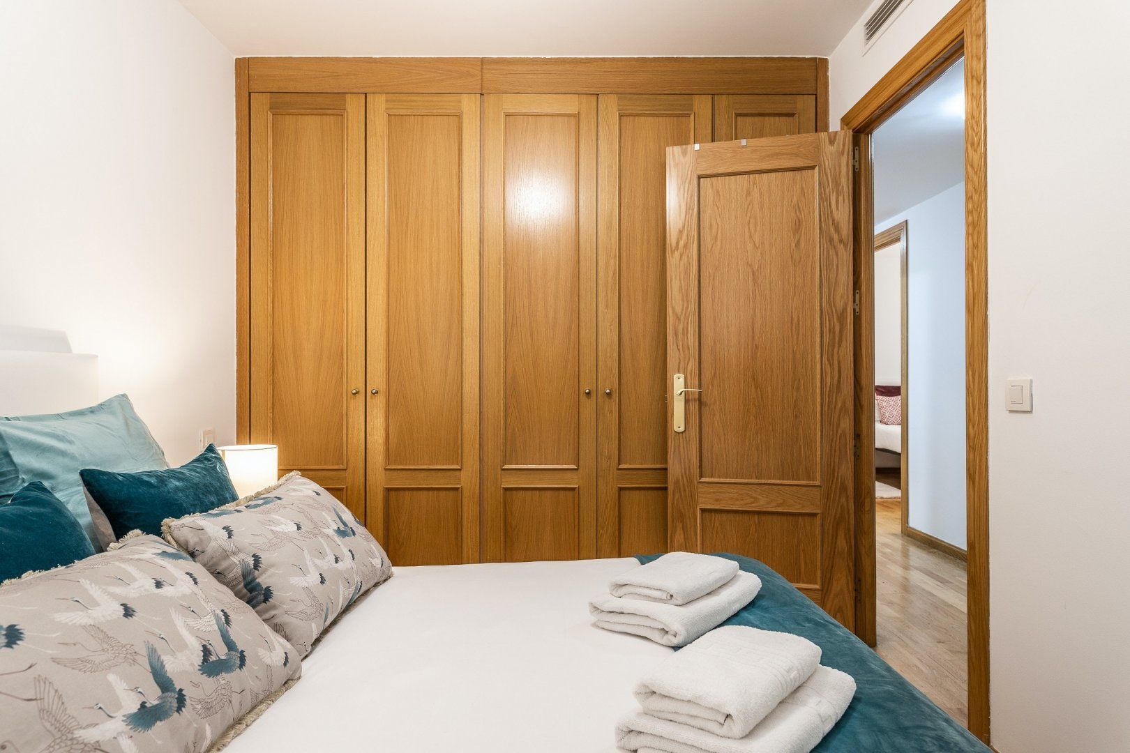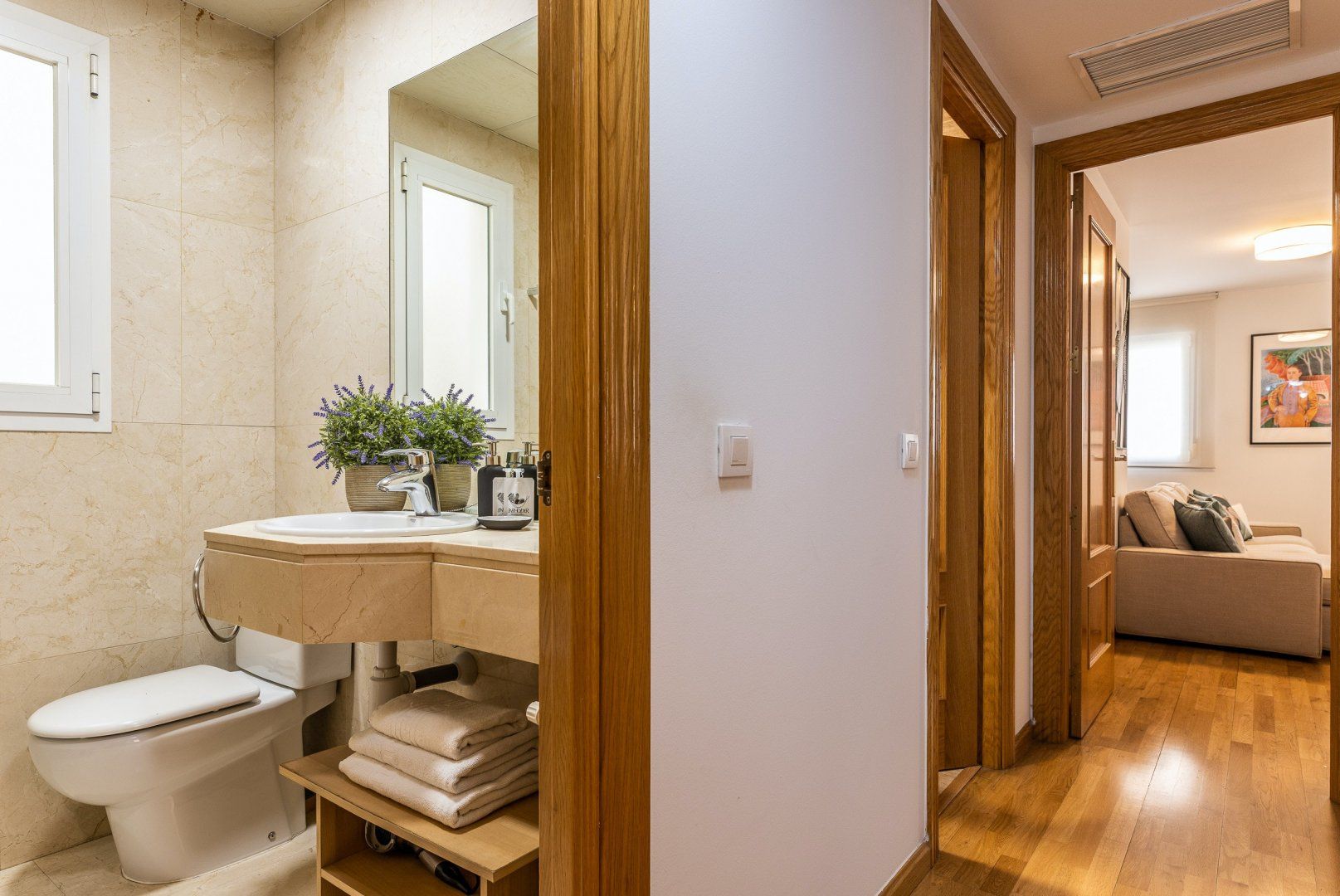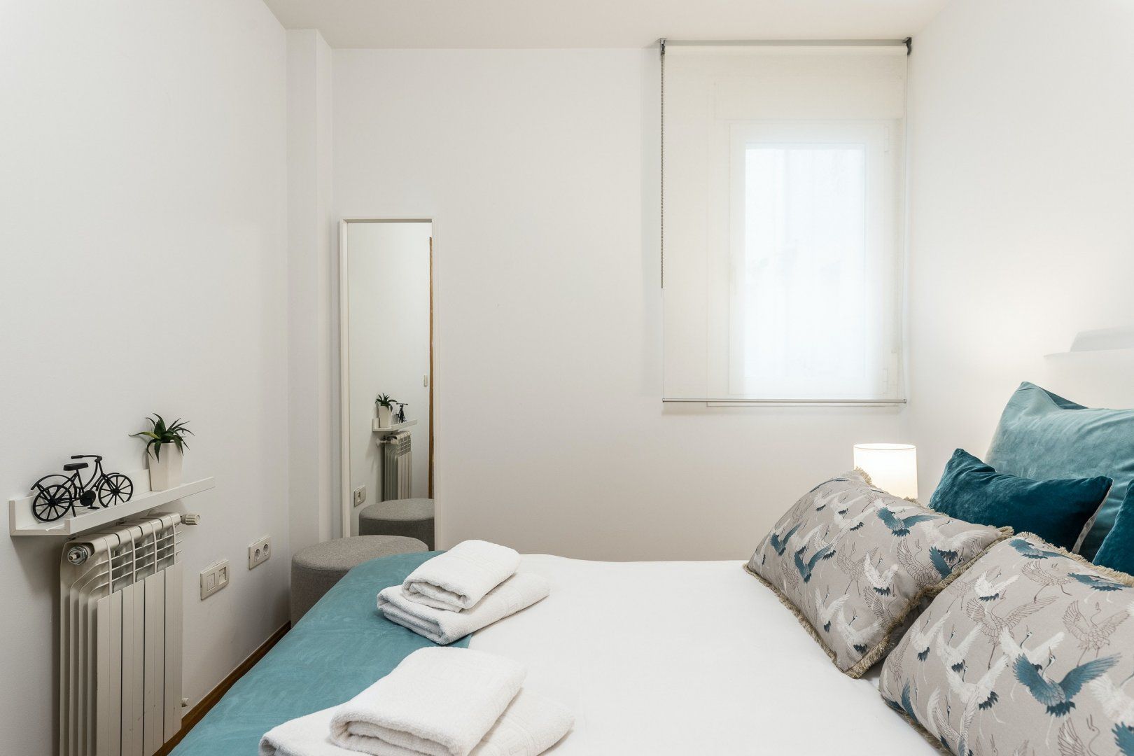 Inside, wood floors, contemporary decor and a collection of eye-catching pieces of art create a calm and welcoming impression in the open-plan living area. The sectional sofa beckons chilled-out evenings over a good book and a glass of Spanish red, while the desk space here comes in handy for those needing to catch up on work. The dining table invites sociable breakfasts over invigorating coffees and celebratory dinners when you’re not out sampling the local tapas scene, and the three comfortable bedrooms are ready to ease you into a restful night’s sleep at the end of a long day of sightseeing.