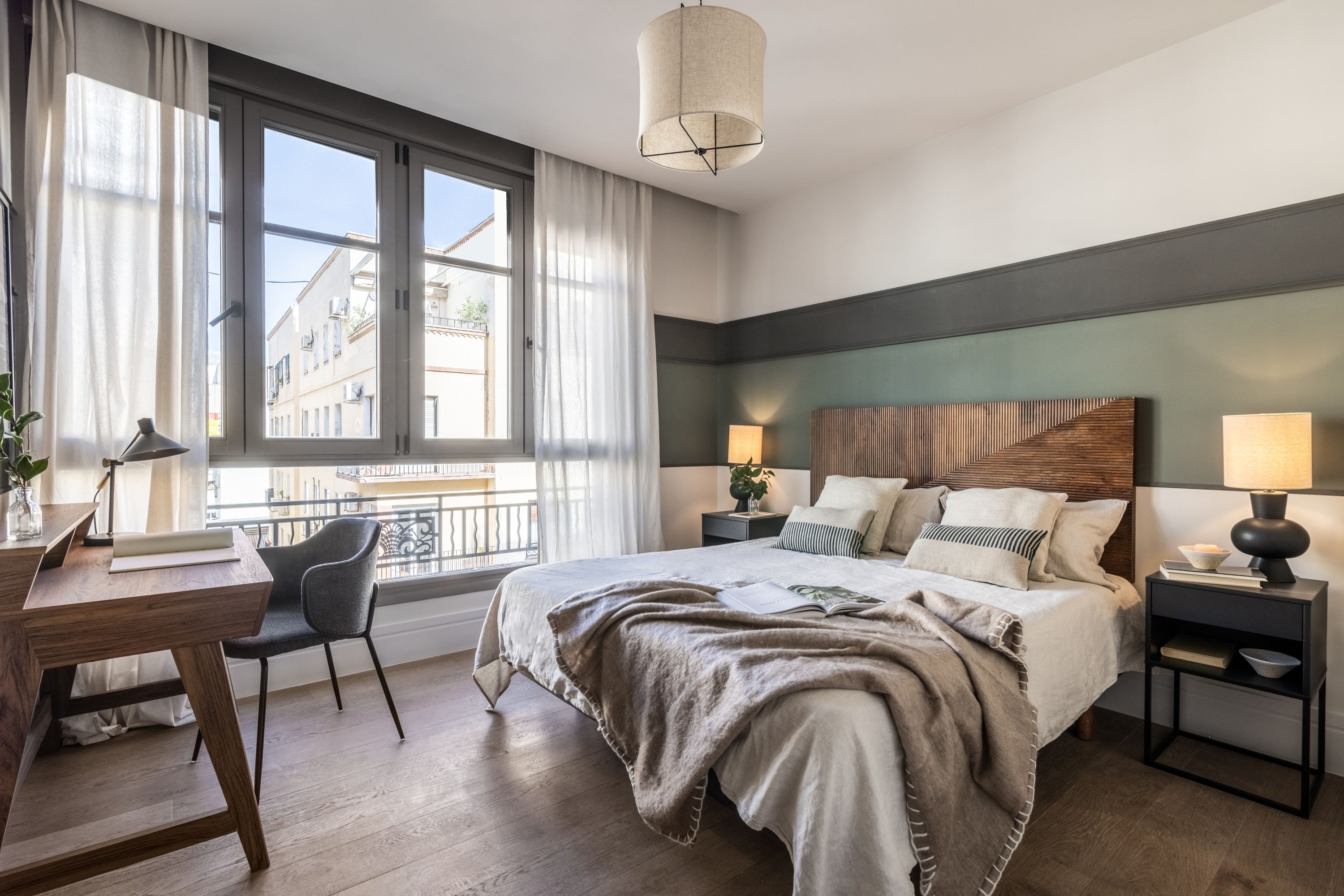 Nestled in the Almagro neighbourhood, this home is an ideal base for a family or two couples on a Madrid getaway. In the city on business? There’s a desk in the main bedroom, making staying on top of emails after hours a breeze. But the cherry on the cake for us? It has to be the on-site amenities. With a rooftop terrace, gym, and shared swimming pool, you can keep up with your fitness routine or relax in the sunshine to your heart’s content.
