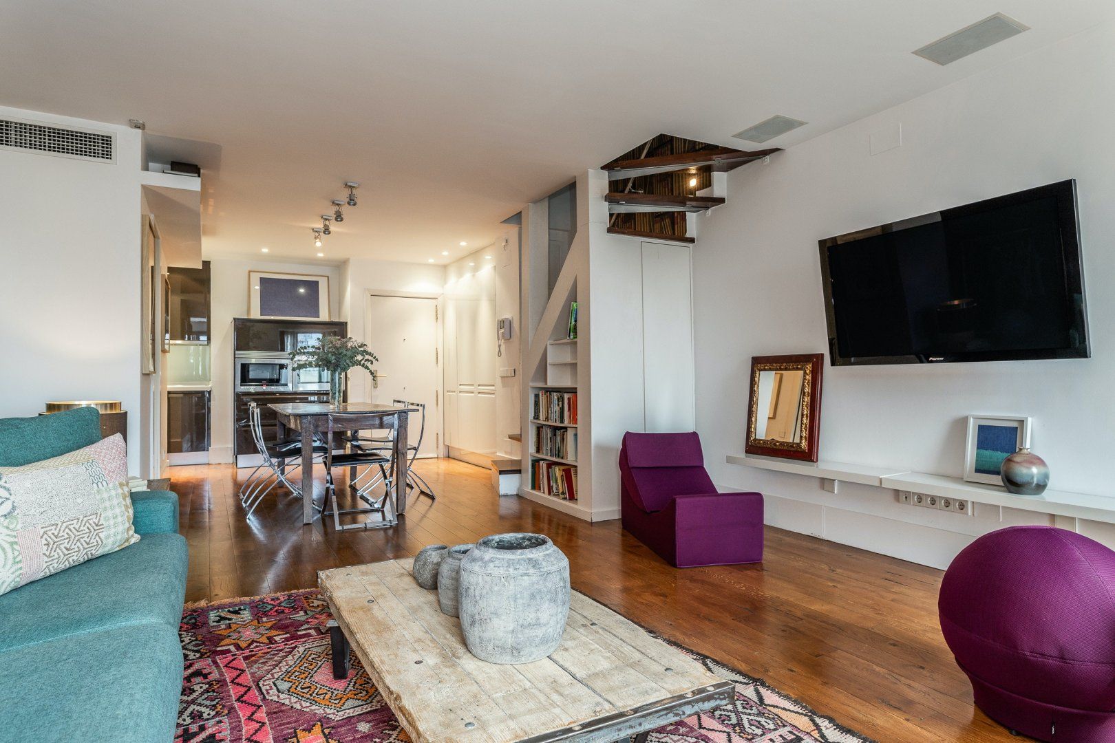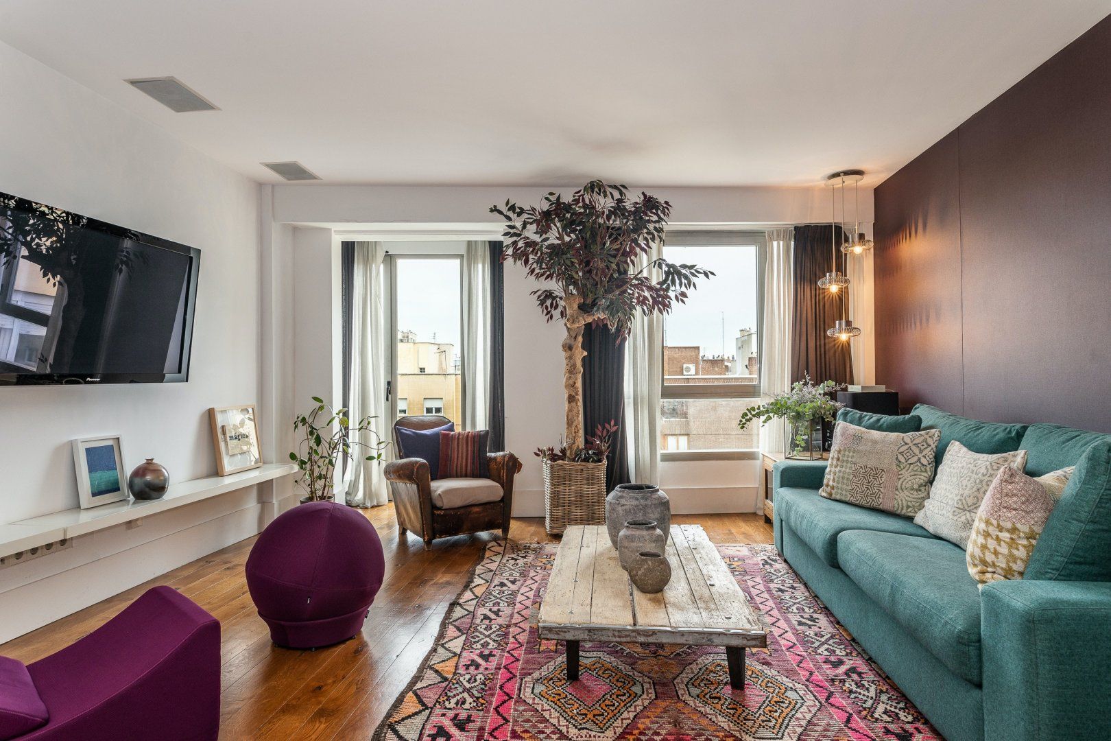 Located in the charming neighbourhood of Chamberí, this apartment is perfect for a cosy city getaway. Relax on the terrace with your morning cup of coffee while watching the world go by below. Spend the afternoon reading a book found on the bookshelf under the stairs, snuggling up on the sofa with a blanket. Use those leftover ingredients from last night's feast to cook up a sumptuous Spanish-inspired brunch in the kitchen before heading upstairs for a luxurious soak in the jacuzzi tub – Why not take a cocktail up with you for an afternoon treat?