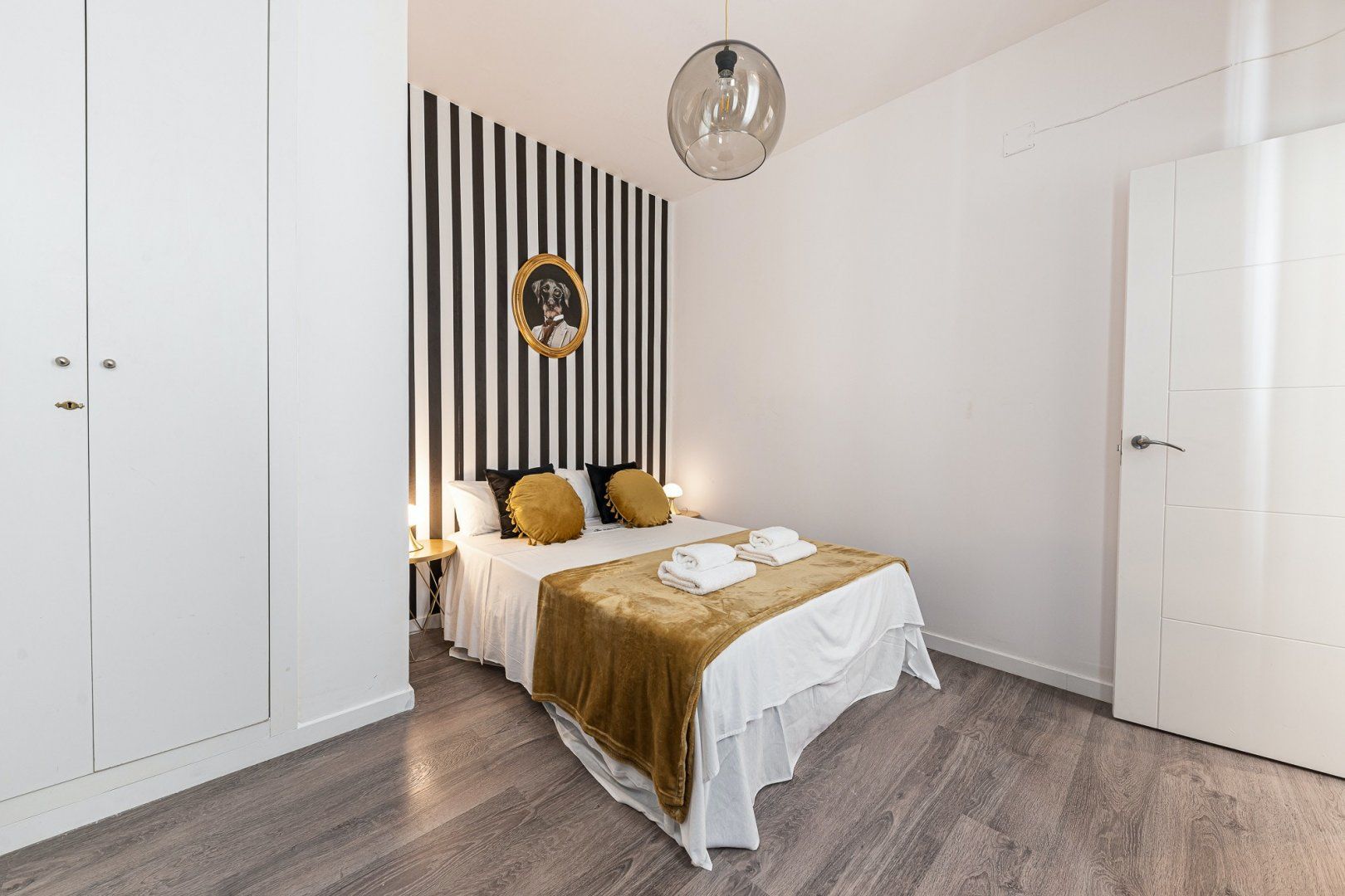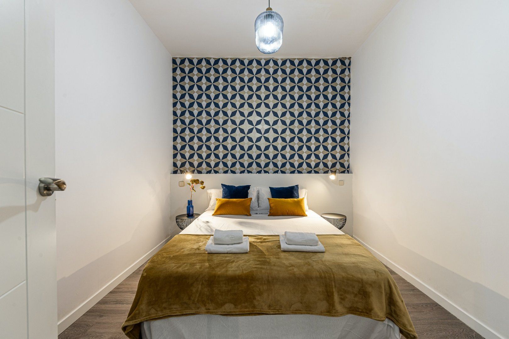 Inside, we love the little design details, such as the geometric and stripey wallpapers, as well as the canine and modern artworks. Grey and mustard furnishings, along with plants and vases of flowers, create a homely vibe. Whip up a refreshing drink with the juicer or make some gazpacho for dinner in the modern kitchenette. This place is the ideal Madrid bolthole for two couples or business professionals.
