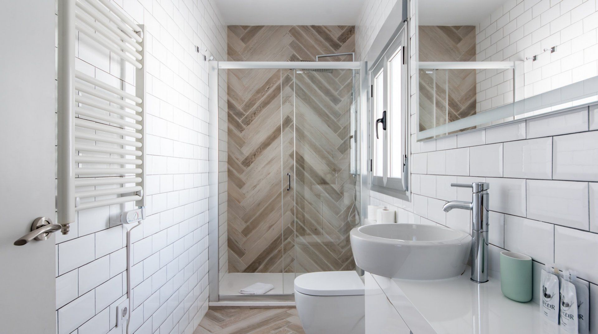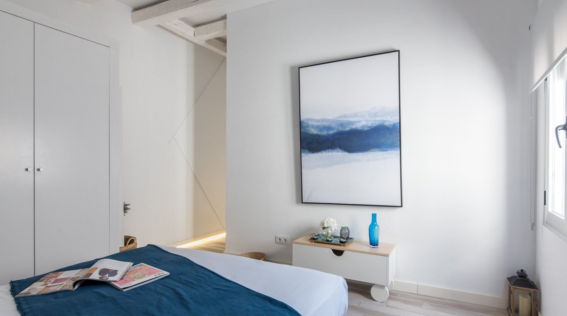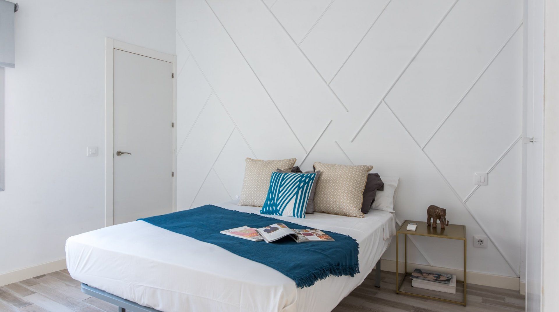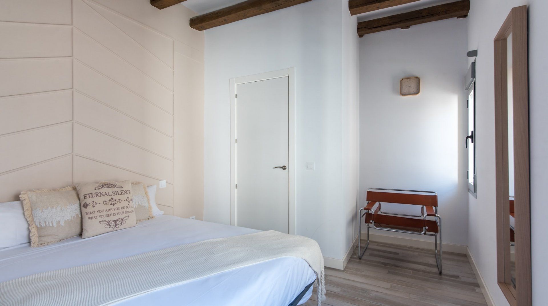 Surrounded by artisan coffee shops and boutique art galleries, this apartment sits on a vibrant street in the heart of Malasaña and the eclectic interior design almost seems like a homage to the creative neighbourhood. The opulent sofa with the titular mural wouldn't be out of place in a local design shop, and neither would the dining table with the wooden hand chairs or the disused scooter display. Before accusations of wackiness get thrown about, we'd like to point out that the basics are done very well too. The high ceilings, walls painted in angelic white and washed-out parquet flooring combine to amp up the brightness, while the en-suite bathrooms all feel super-sleek, too. The location also deserves its fair share of praise. Some of Madrid's big-hitters are nearby — the Palace and Cathedral can be reached in fifteen minutes on foot, for example — while the shops and notable architecture of Gran Vía are only five minutes' walk away as well.