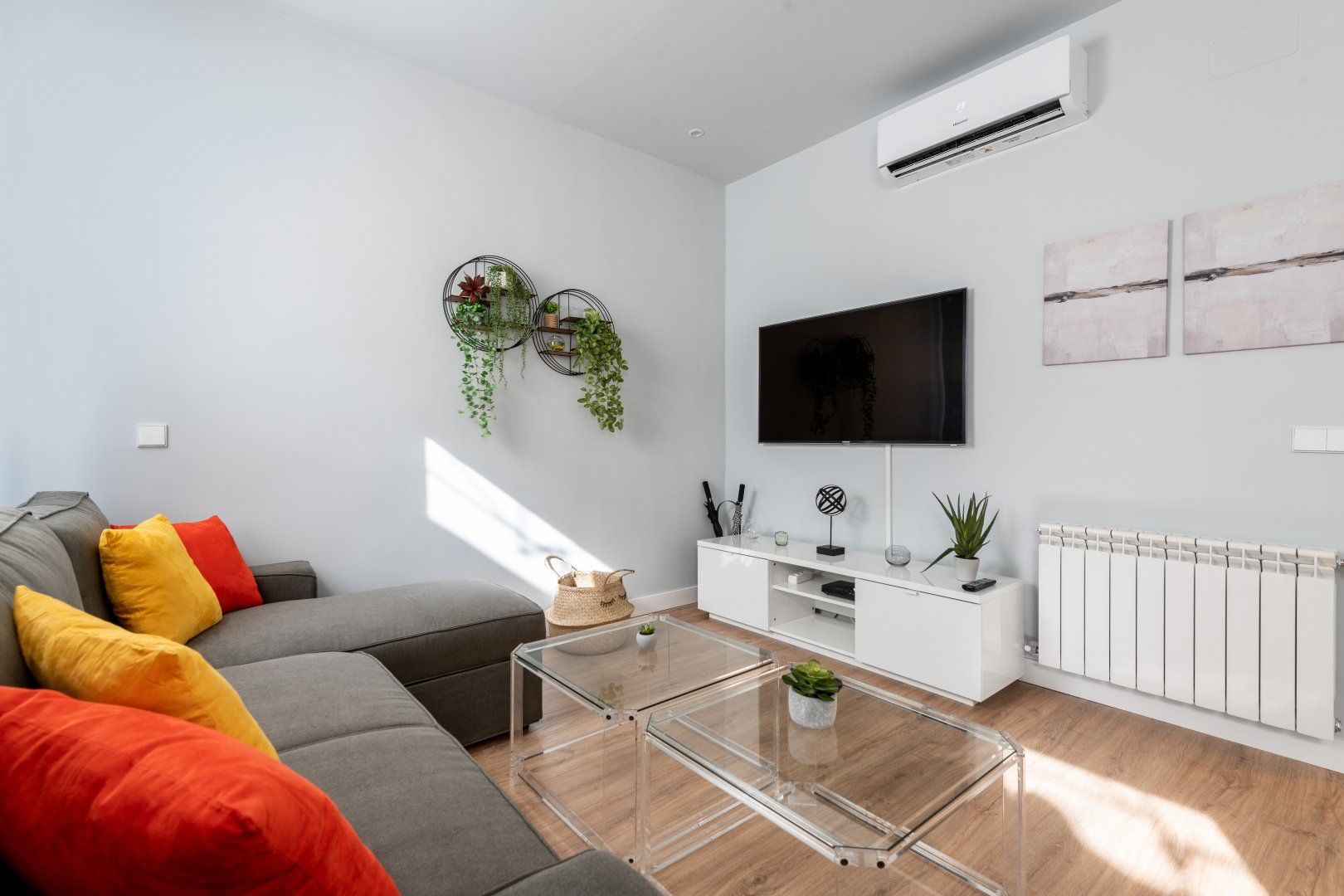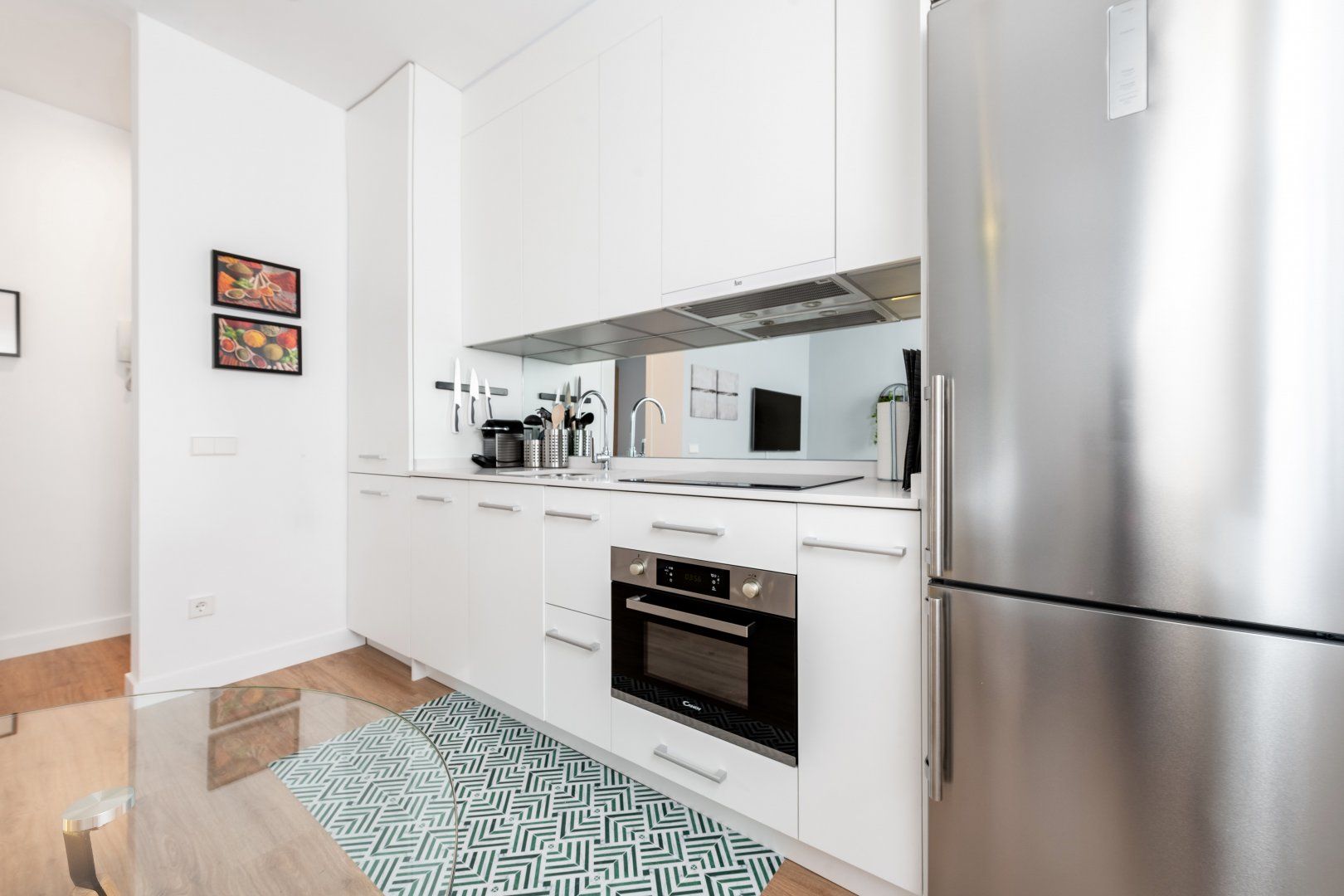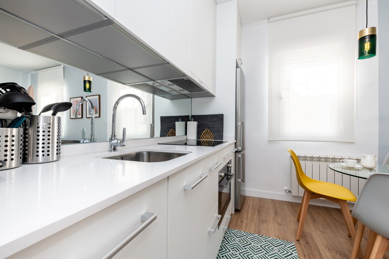 This lovely, light-filled apartment is your ticket to experiencing the best of Madrid. Located in Chamberí, a historic and upmarket district, this fresh home is a tranquil hideaway from the hustle and bustle of the streets below. The home has been designed to provide easy access to everything you might need, whether your stay is for business or pleasure. The sleek kitchen merges with a clean and simple dining area, while the sitting room is more than spacious enough to crash out and watch your favourite shows. There’s even a dedicated workstation tucked away, just in case you need to check in with the office during your stay. Outside, the Madrid Metro keeps you connected to the rest of the city. Still, you won't need to go far to dip your toe into the city's famous cultural waters, as there are several fascinating museums, historic cinemas and entertaining theatres on your doorstep.