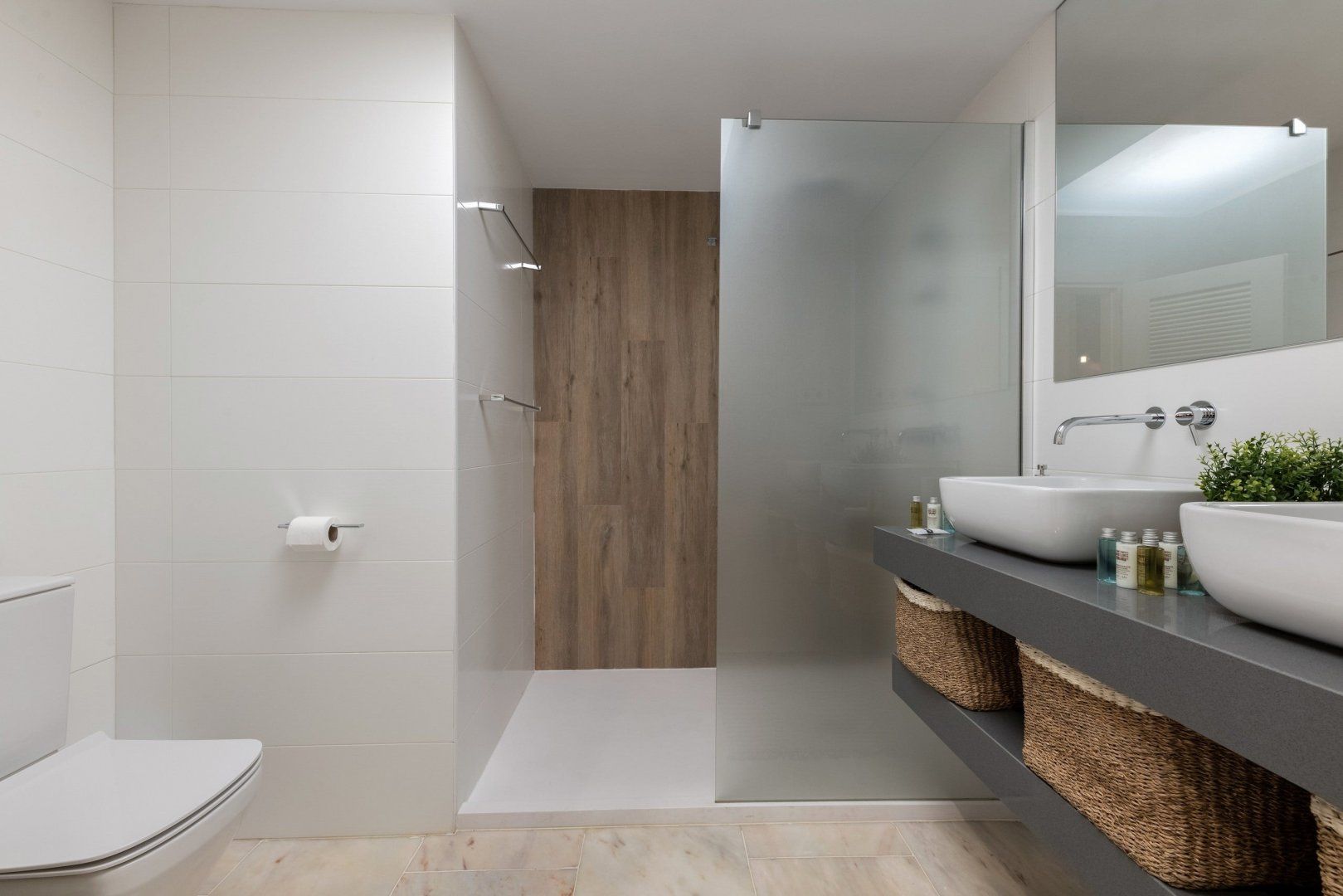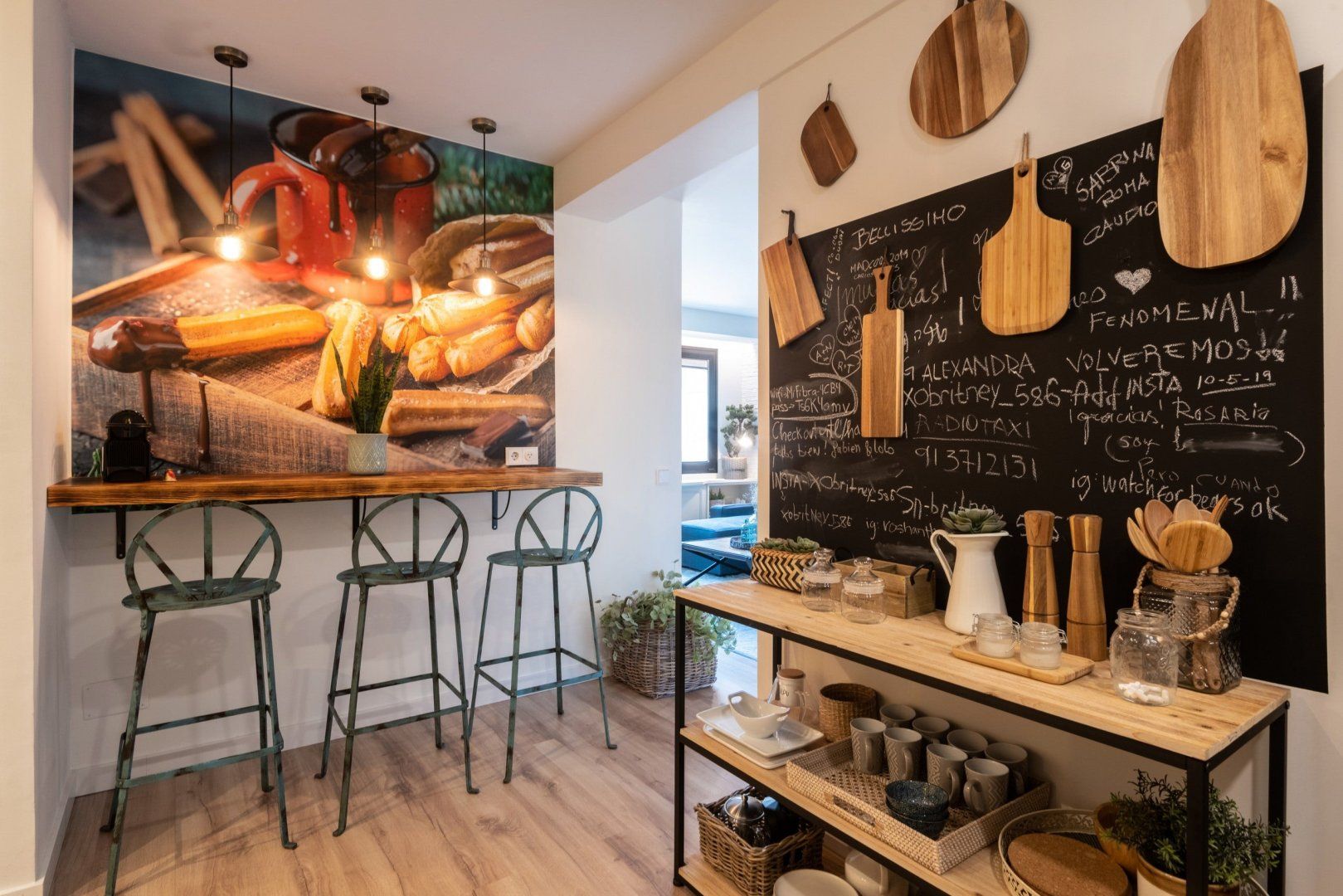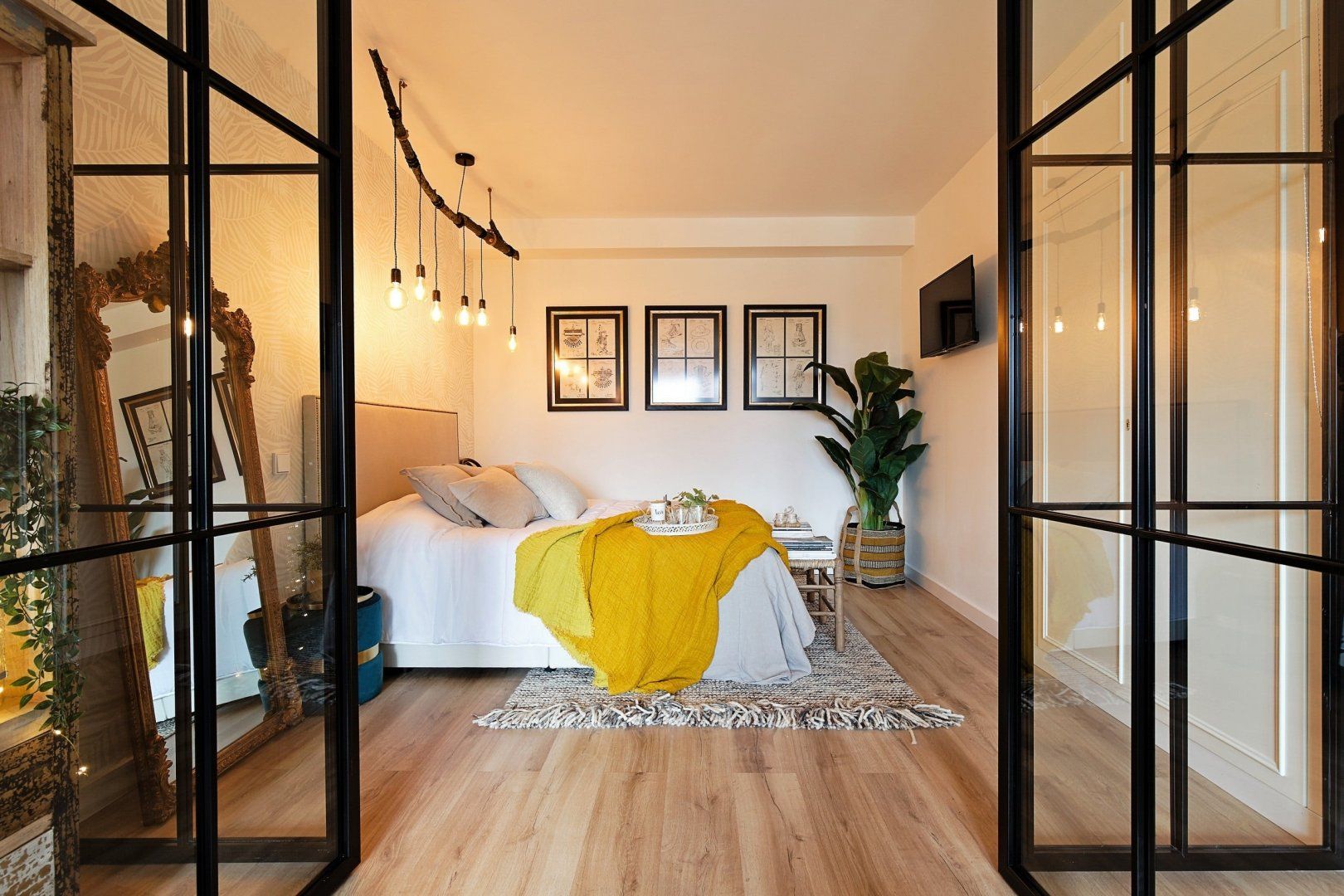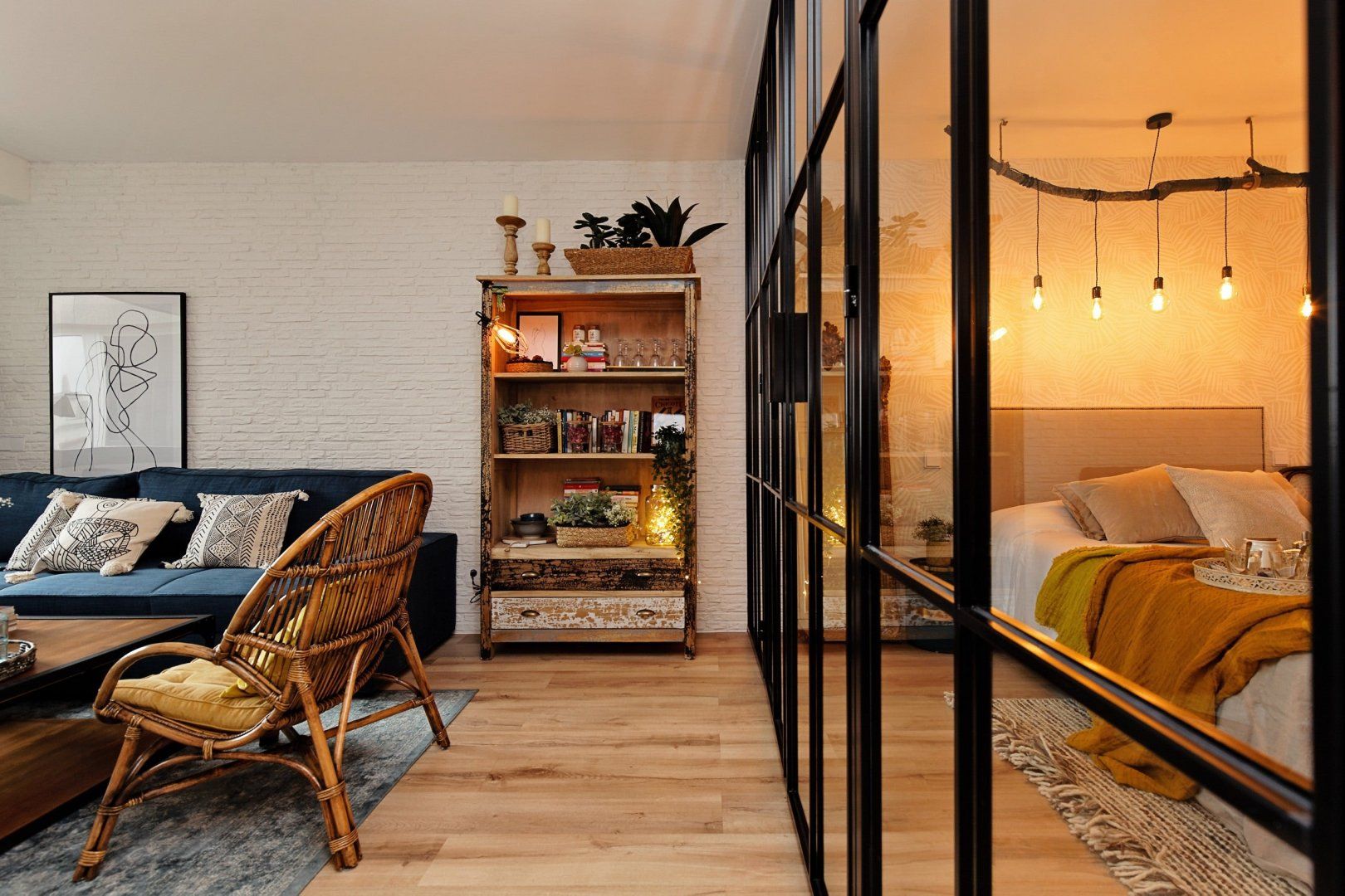 With elegant finishes, from the chic artwork adorning the exposed, white brick walls, to the thoughtful choice of contemporary soft lighting, it is at once effortlessly cool and cosy. The combination of wooden and metal fittings, mixed with rustic design elements creates a blissful feeling of tranquillity. Enjoy your morning coffee at the charming wooden breakfast bar, or take an afternoon siesta, opening up the beautiful floor-to-ceiling glass doors.