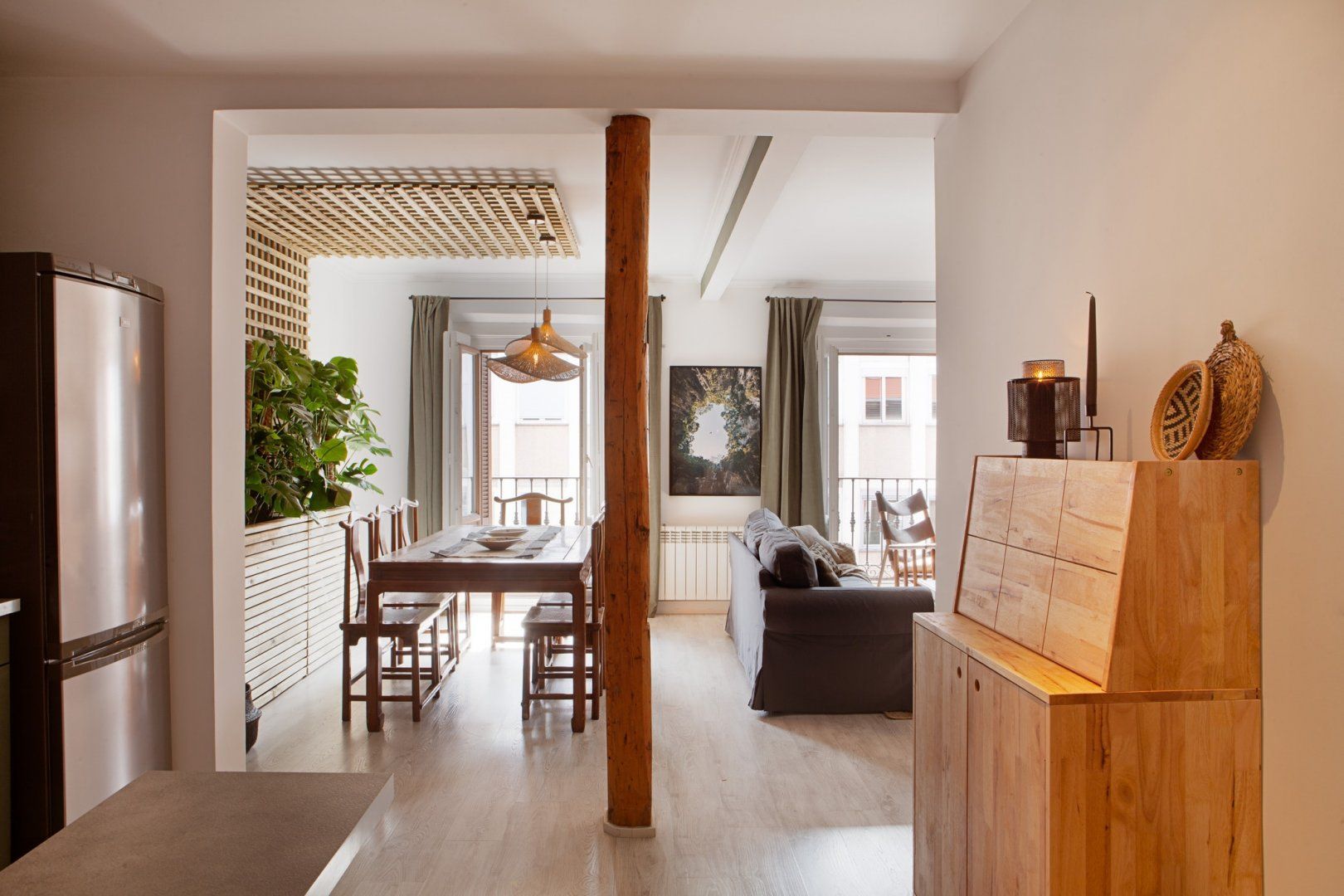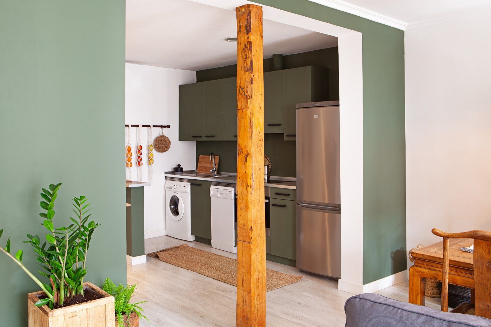 There's more than a hint of jungle inspiration in this apartment, making it the perfect oasis in bustling Madrid. With sage green walls, natural woods and even a one-of-a-kind statement ceiling piece adorned with plants, you'll find yourself feeling zen within seconds of arriving. We especially liked the record player, so you can play some vinyl as you cook, socialise or make plans for your time in Madrid. The surrounding Justicia neighbourhood is a firm favourite amongst visitors and locals alike, with its quirky boutiques and traditional tapas bars. Getting around is easy from here too – the Puerta del Sol is just a 15-minute walk from the front door, and Bilbao Metro station is even closer.