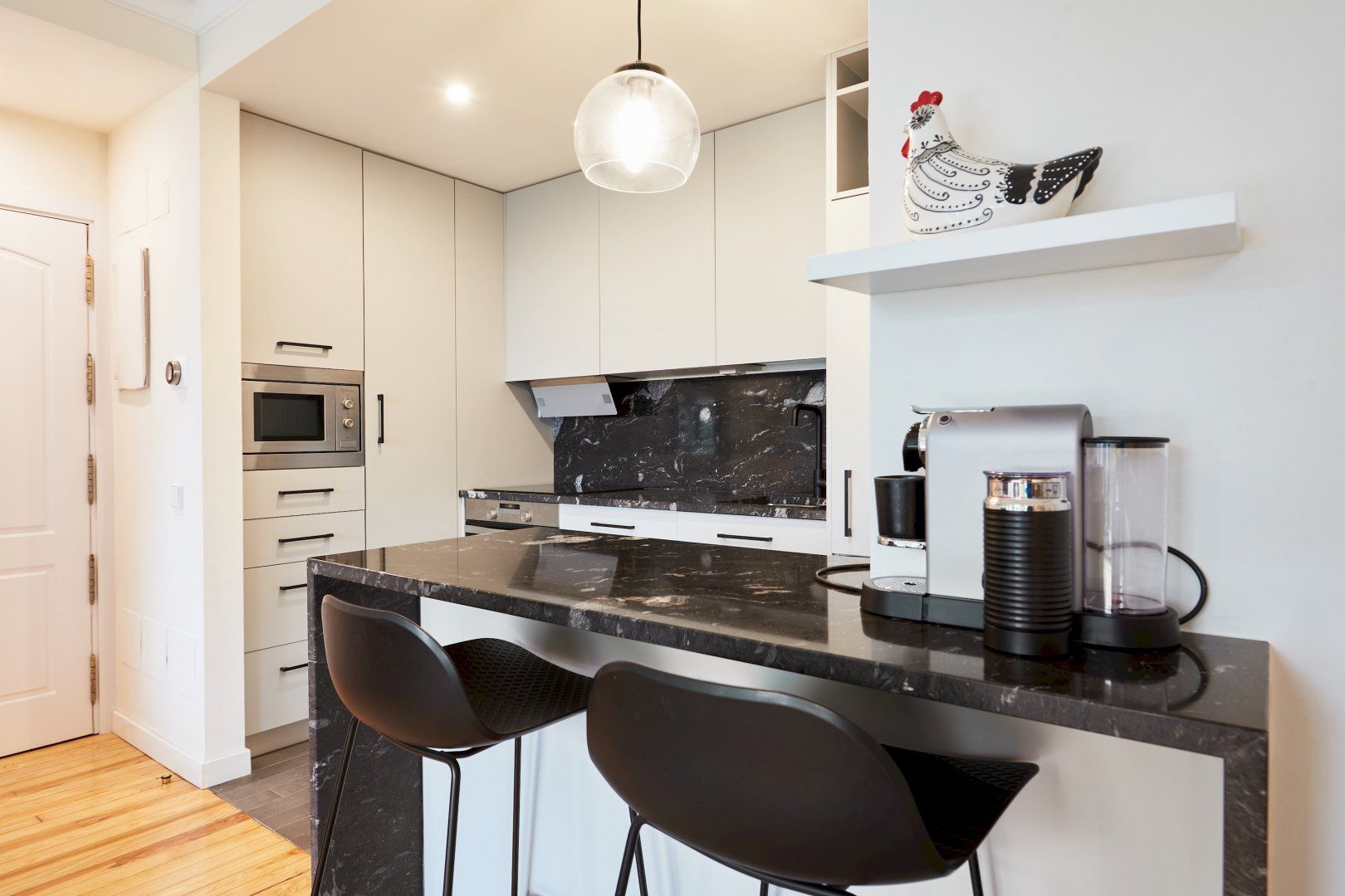To stay at this stylish home-from-home in the heart of bustling Atocha is to discover the rich history of Madrid. Inside the apartment, think vibrant pops of colour, abstract art, and sleek furnishings on a white-walled and light wooden floor canvas. It's the perfect spot to unwind with a glass of something nice after a day roaming the paved streets and ambling around the traditional plazas. Bright and roomy, the living space is bathed in natural light while the open-plan layout creates a sociable area to catch up with friends. Likewise, it's a lovely spot to doze off in the afternoon, siesta-style. When your batteries are recharged, explore the surrounding area — the grand Parque de El Retiro is just around the corner from your front door, while there are plenty of museums, galleries and noble buildings that can be reached easily on foot. Whether you're perusing historical sights, tasting local delicacies, or simply getting away from it all, you're sure to fall head-over-heels for this neighbourhood.