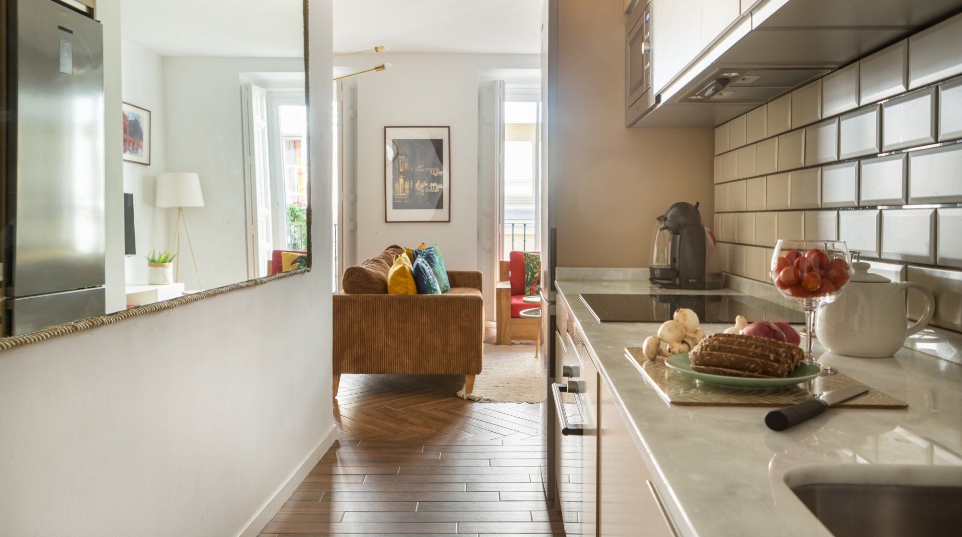 Despite being located in the heart of Malasaña, Autumn Jungle is tucked away on a quiet street. Walking to Plaza Mayor or Palacio Real will be a breeze, but the nearby streets of Madrid's trendiest neighbourhood will have you stopping in art galleries and cosy bars along the way. This is a well-executed home with curated artwork, where special attention has been given to the details. It might not be the biggest home in our collection, but it has a pleasant, bohemian chic vibe that fits in perfectly in the spirit of Malasaña.