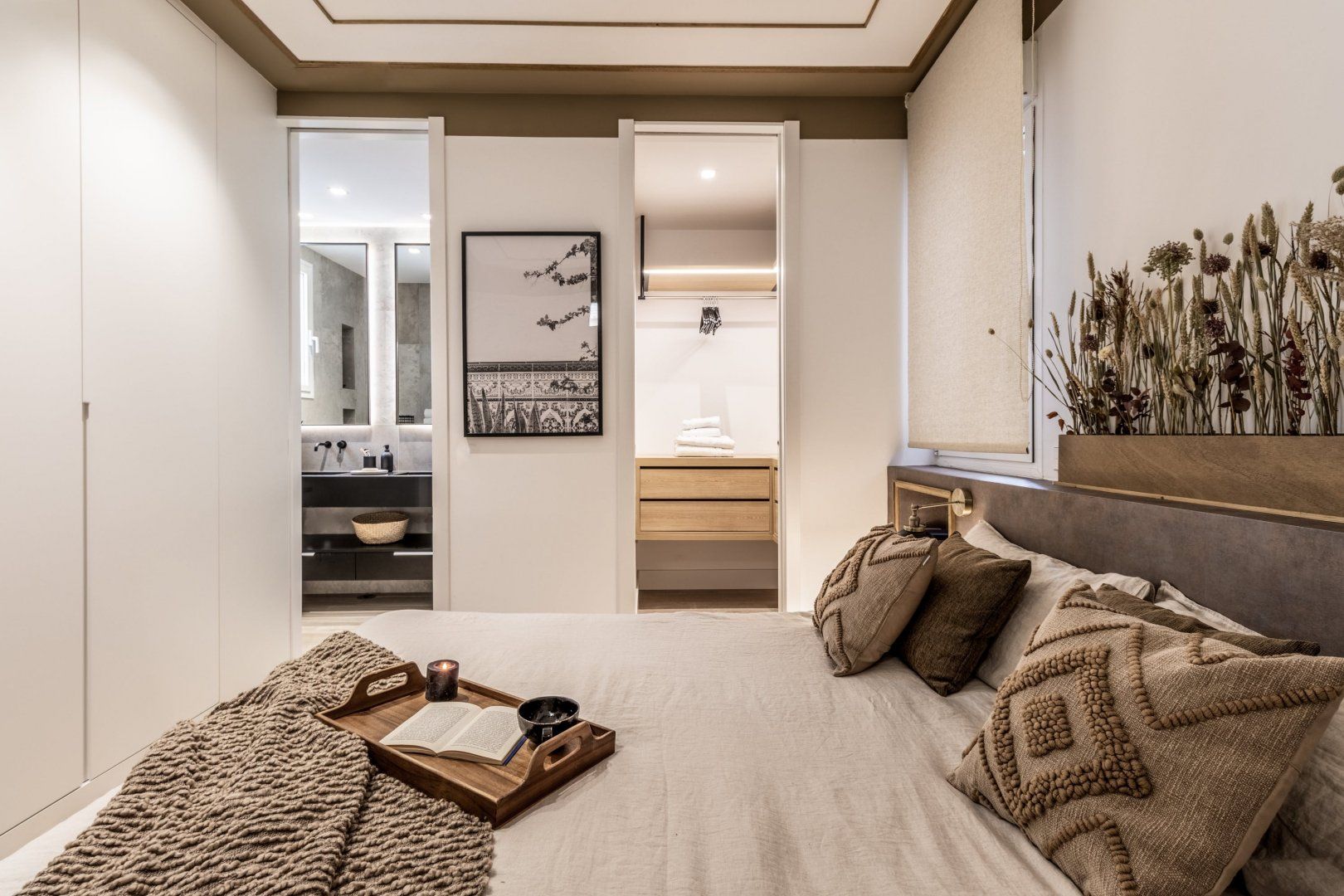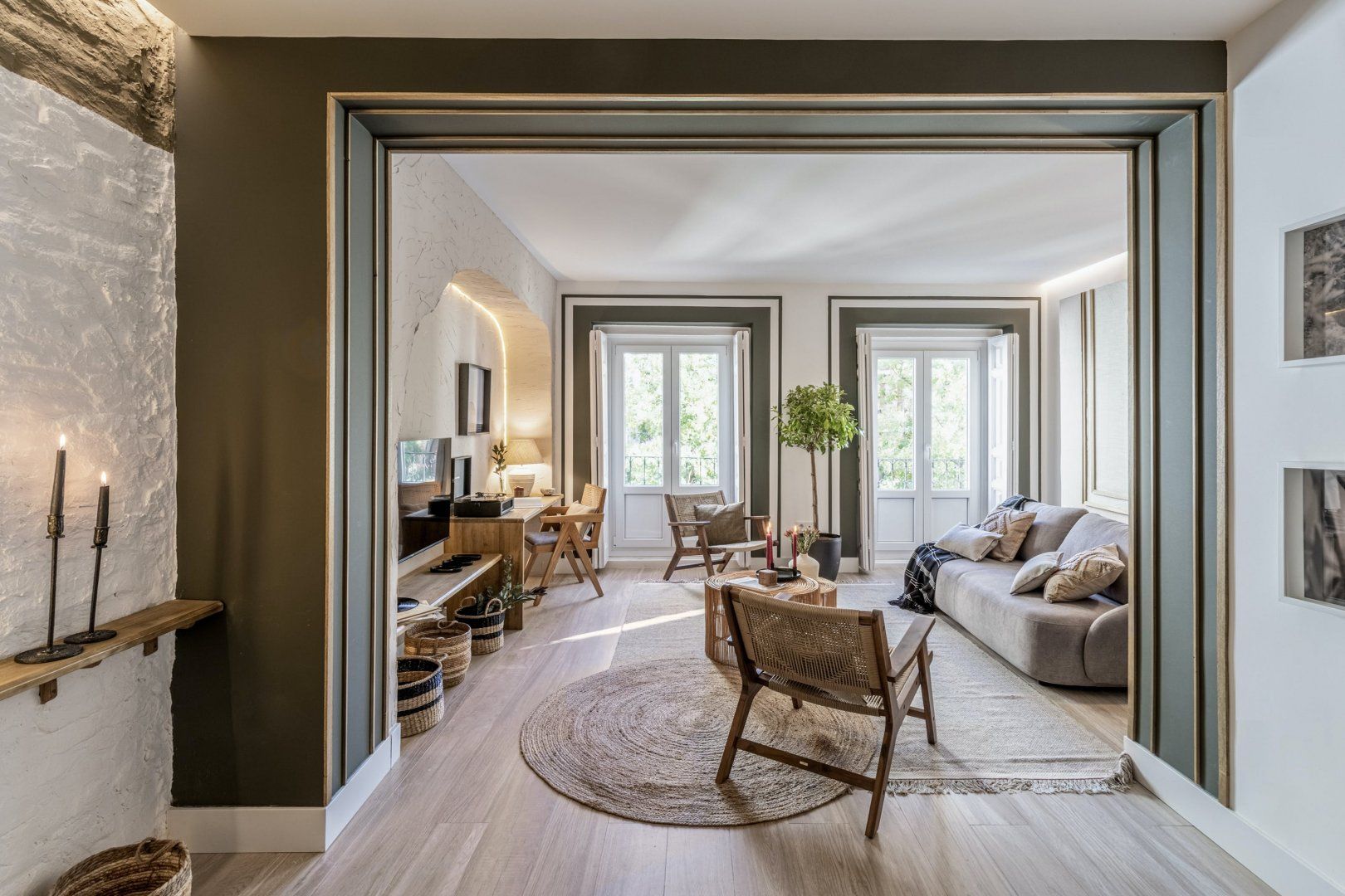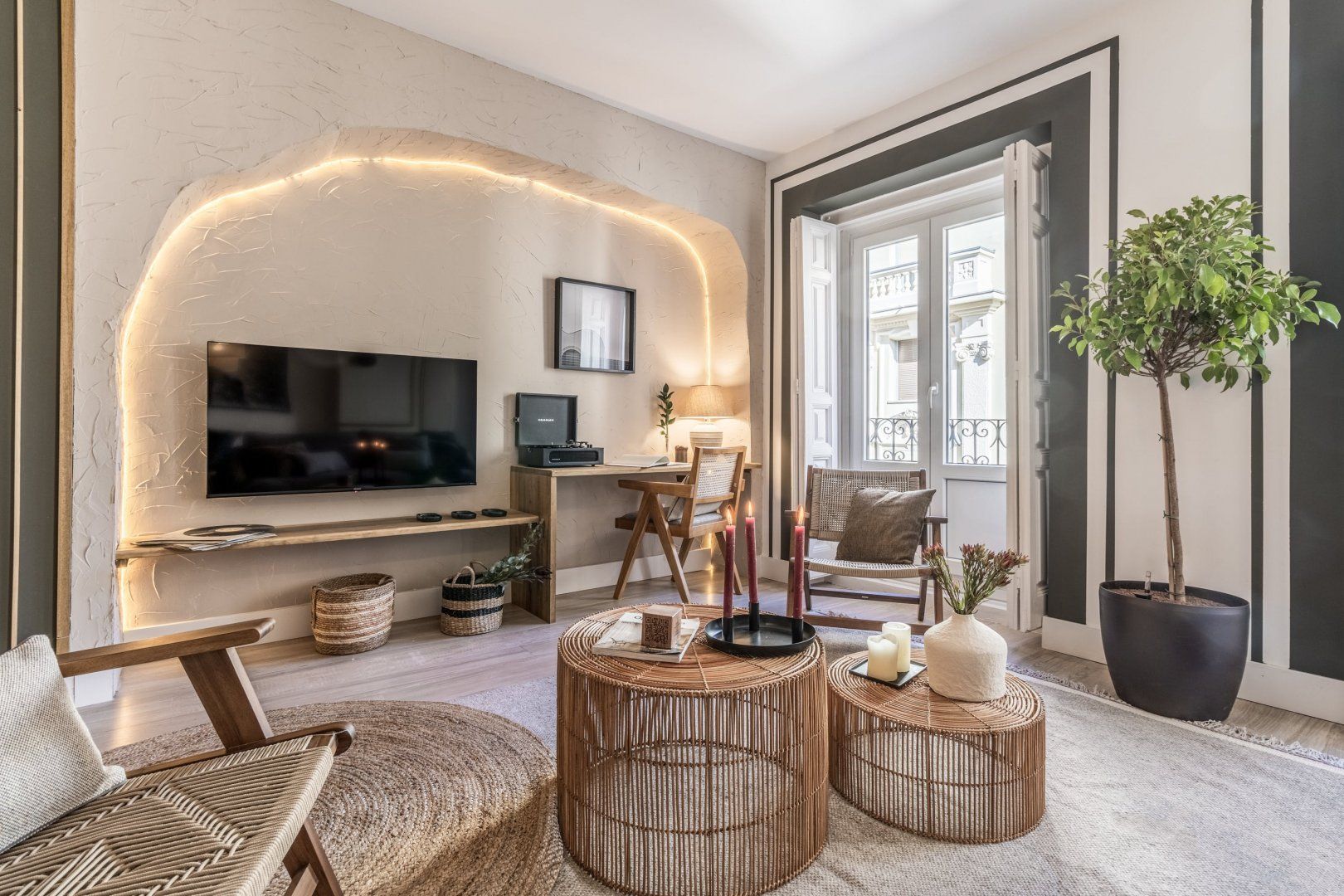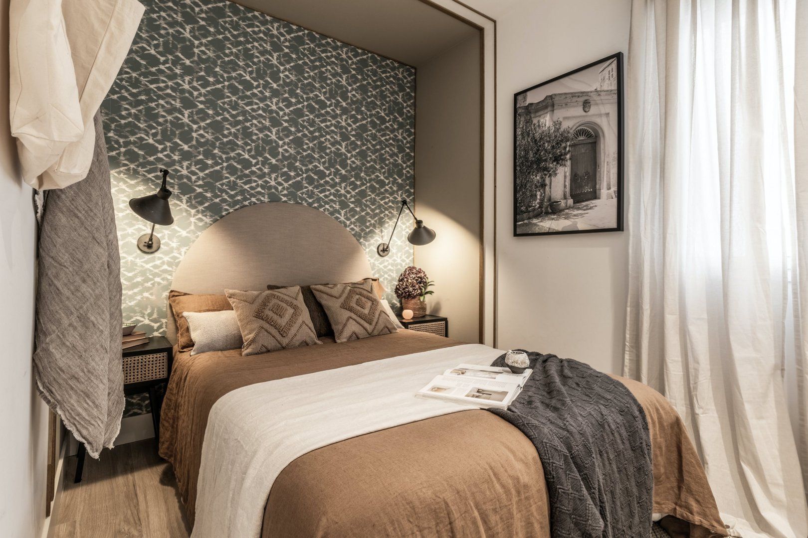 Known for its vibrant atmosphere, Trafalgar is the place to be if tapas restaurants, sidewalk cafes, and independent shops are at the top of your to-do list. You'll have to hop on the metro to reach Madrid's most famous landmarks, but seeing as there are two stops a short stroll away, that shouldn't be a problem. Besides its chic bohemian style, the apartment offers amenities like underfloor heating, a walk-in closet, and even a workspace if you're travelling for business. A lovely touch is the Juliet balconies, so quintessentially Spanish and perfect on summer evenings.