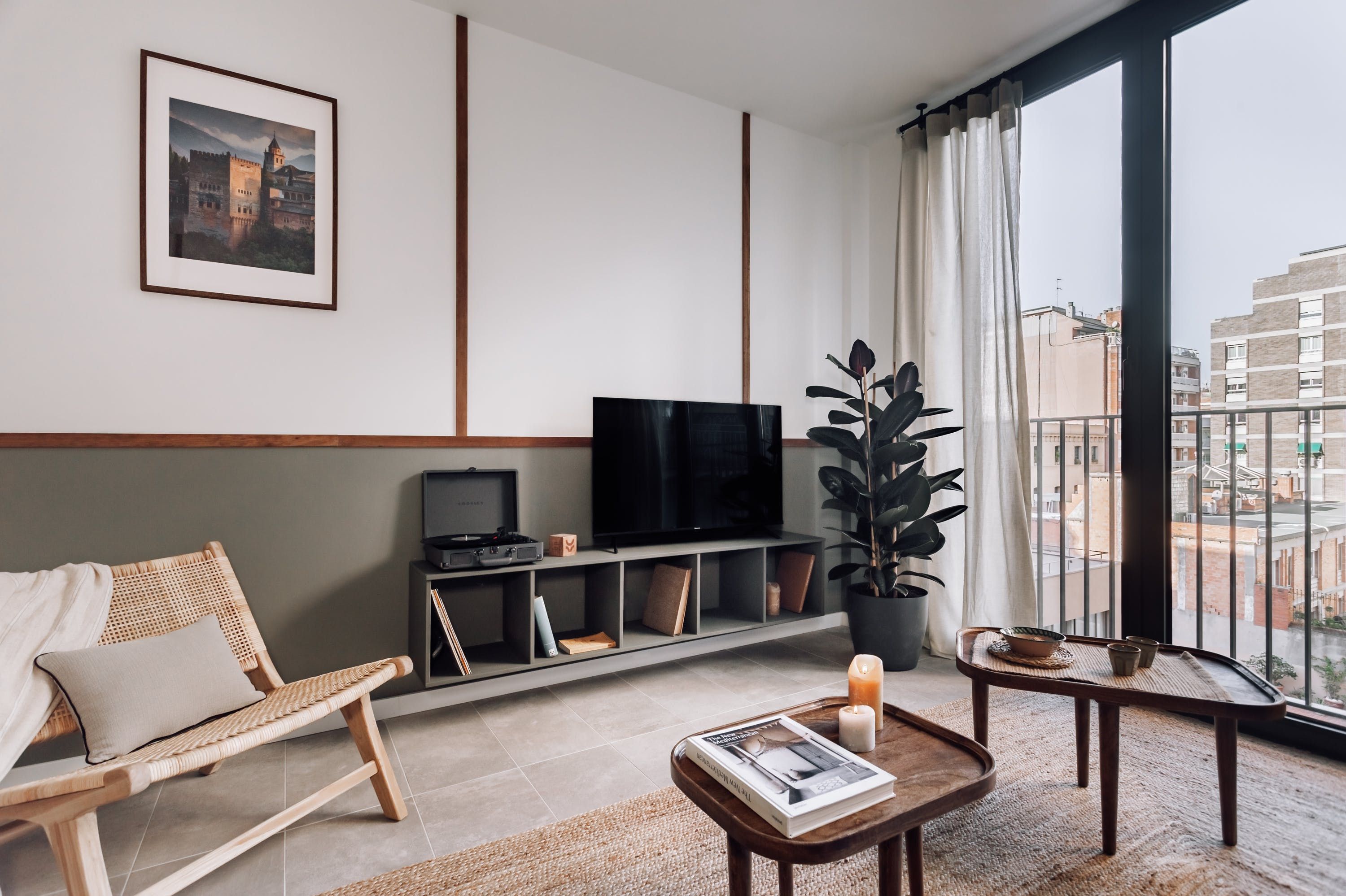 Warm and welcoming, this apartment is an excellent home-from-home in Barcelona. You’ll find it in Example Esquerra, one of the city’s most sought-after neighbourhoods – it’s a hub of culture, with lively nightlife alongside galleries and restaurants. You’ll be just a short walk from the sights of the city centre, too. We love the apartment’s full-length windows, which add to the home’s bright and breezy vibe. It’s equipped with everything you might need for a city break, including a handy workstation for those in town for business or study.
