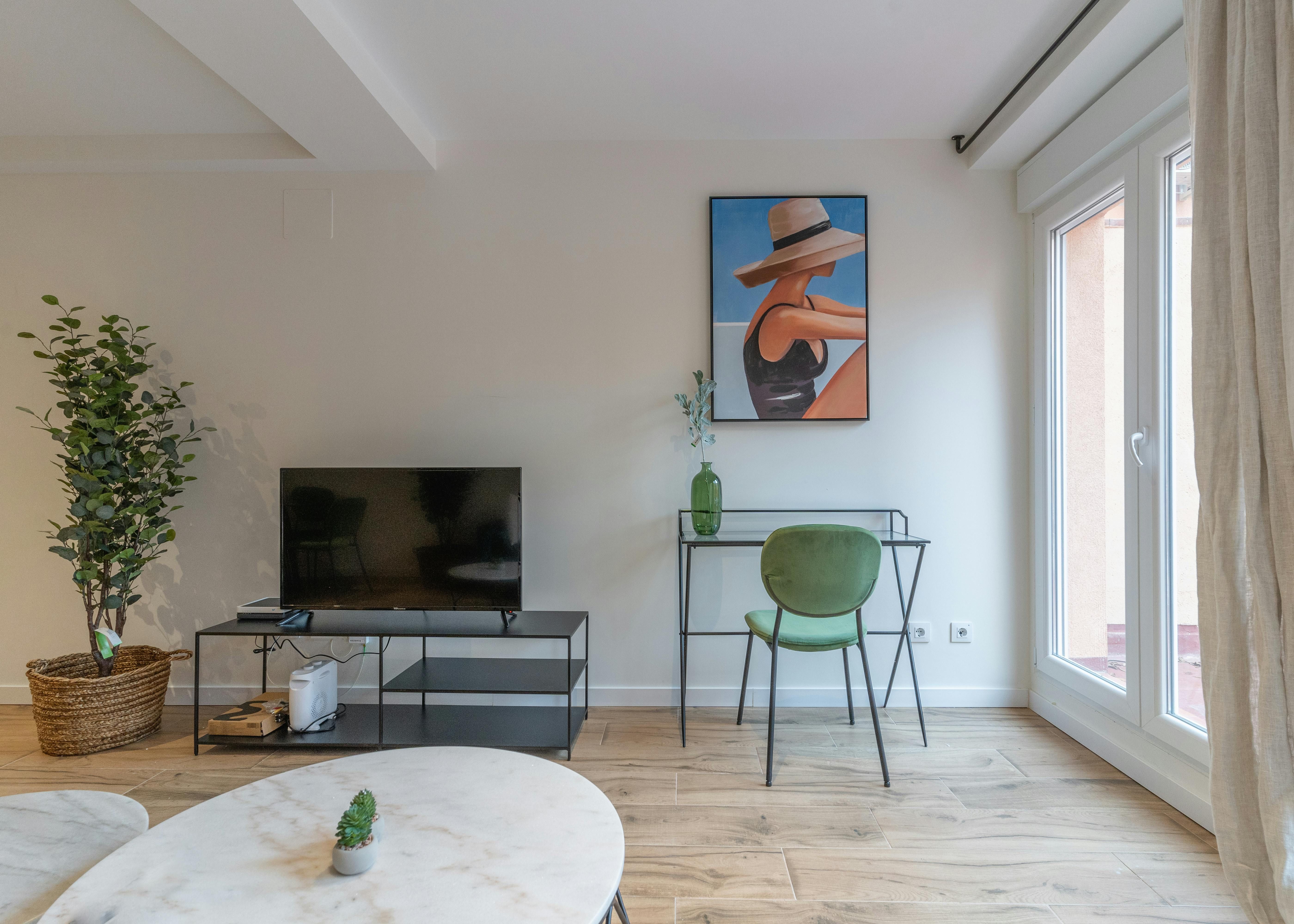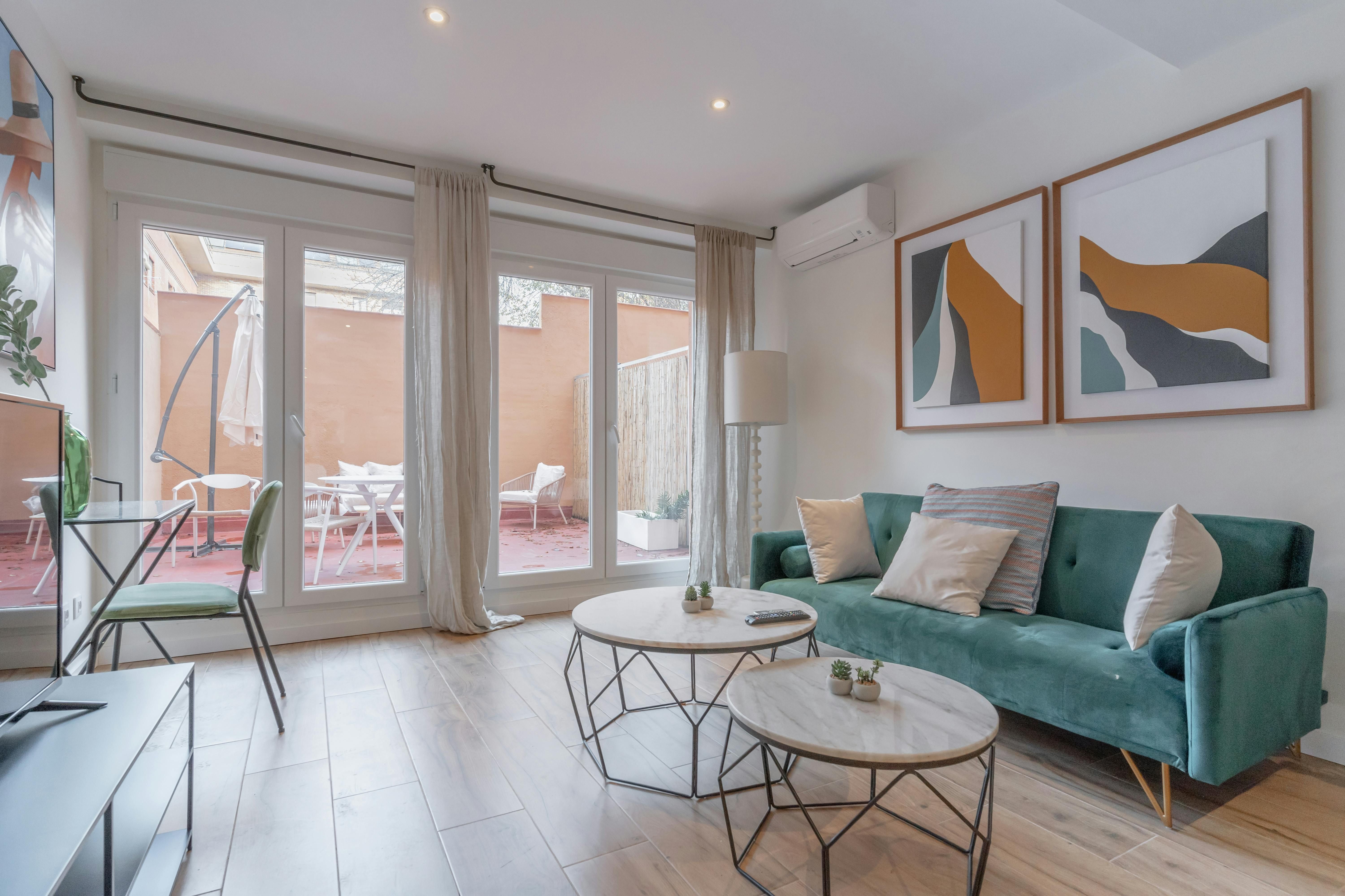 In the centre of Chamartín, just a short walk from Plaza de Castilla, this home would definitely suit those in Madrid for work – and for visitors looking to get a taste of city life as a local. Here, you've got handy amenities on your doorstep, including a park, supermarkets, and restaurants, yet it's just a quick trip on the metro to the centre of Madrid – or Real Madrid's home at Santiago Bernabéu. When you're not exploring the city, the private patio is a great place for drinks with friends or family, and the fully-equipped kitchen means you don't need to sacrifice home-cooked meals while you're away.